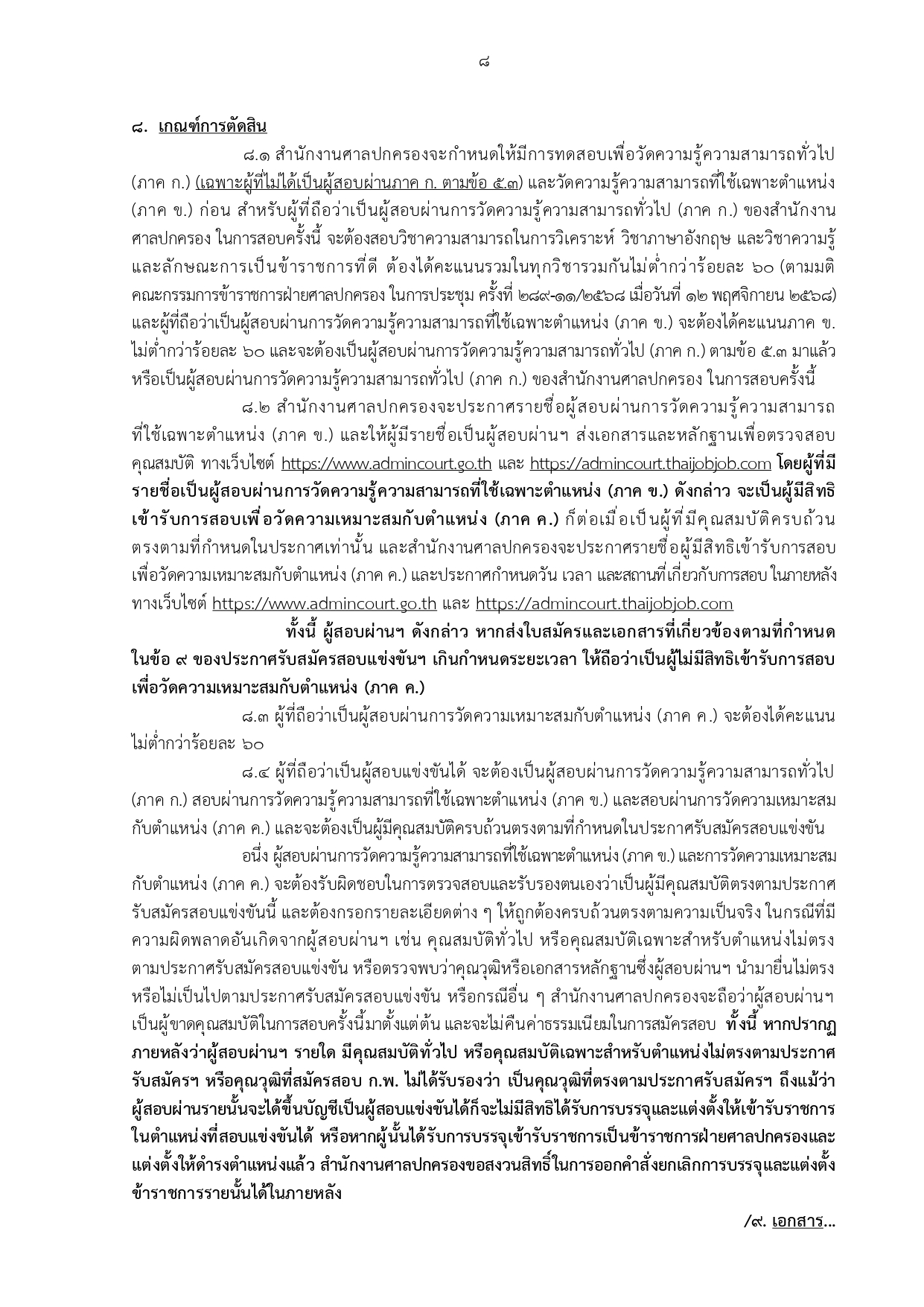 ตำแหน่งเจ้าหน้าที่ศาลปกครองปฏิบัติการ (ด้านกฎหมาย) จำนวน 8 อัตรา