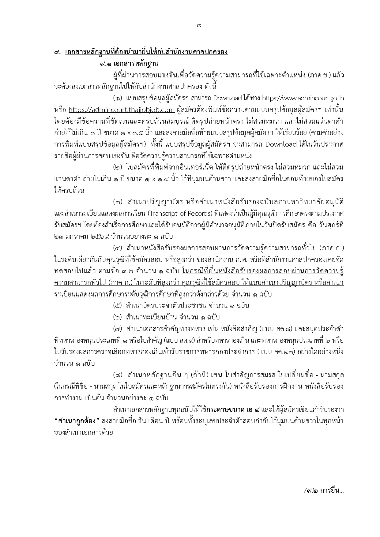 ตำแหน่งเจ้าหน้าที่ศาลปกครองปฏิบัติการ (ด้านบริหารทั่วไป) จำนวน 9 อัตรา
