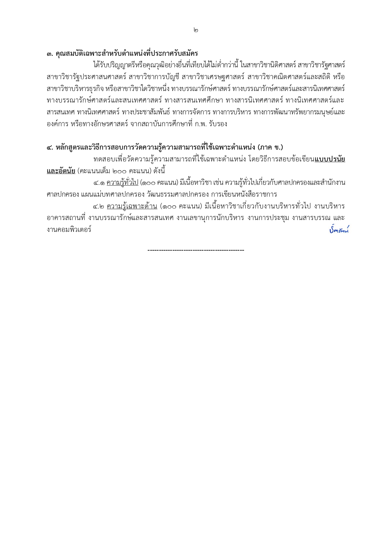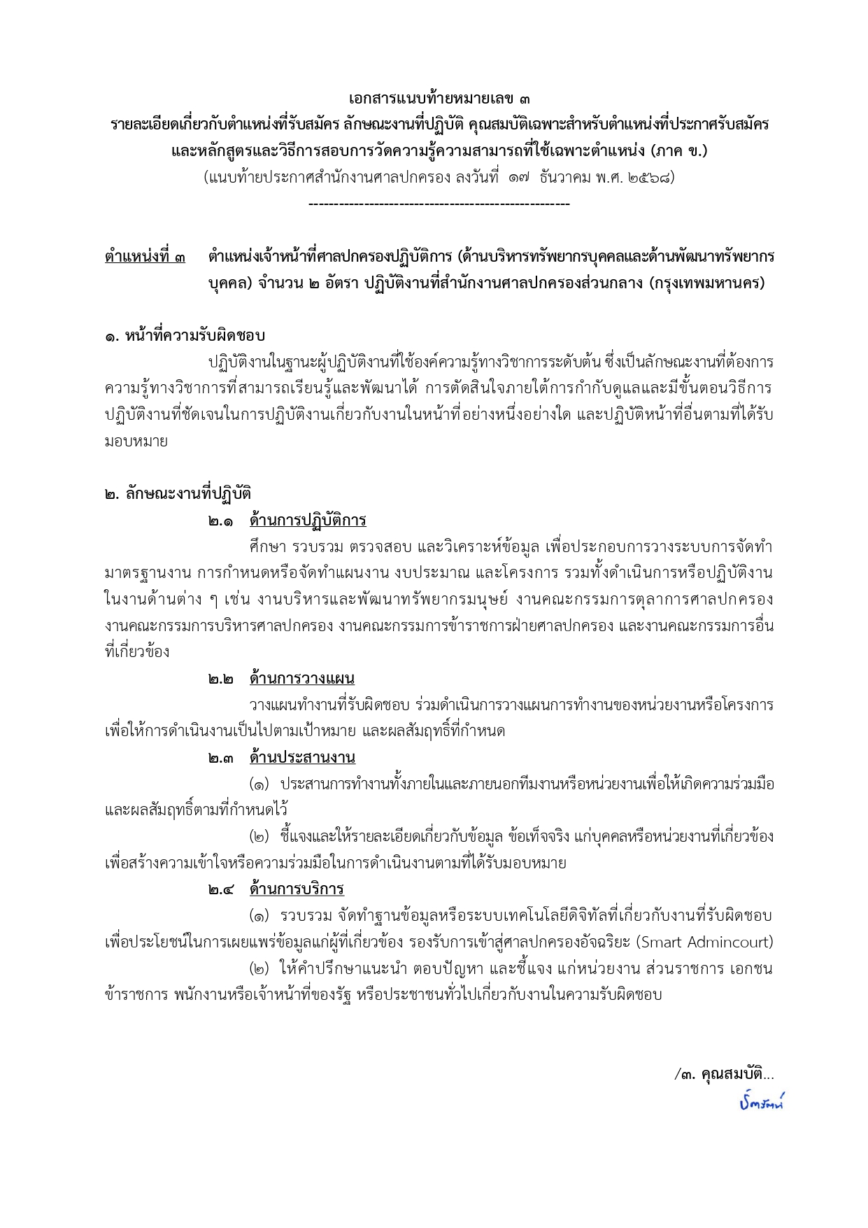 ตำแหน่งเจ้าหน้าที่ศาลปกครองปฏิบัติการ (ด้านบริหารทรัพยากรบุคคลและด้านพัฒนาทรัพยากรบุคคล) จำนวน 2 อัตรา