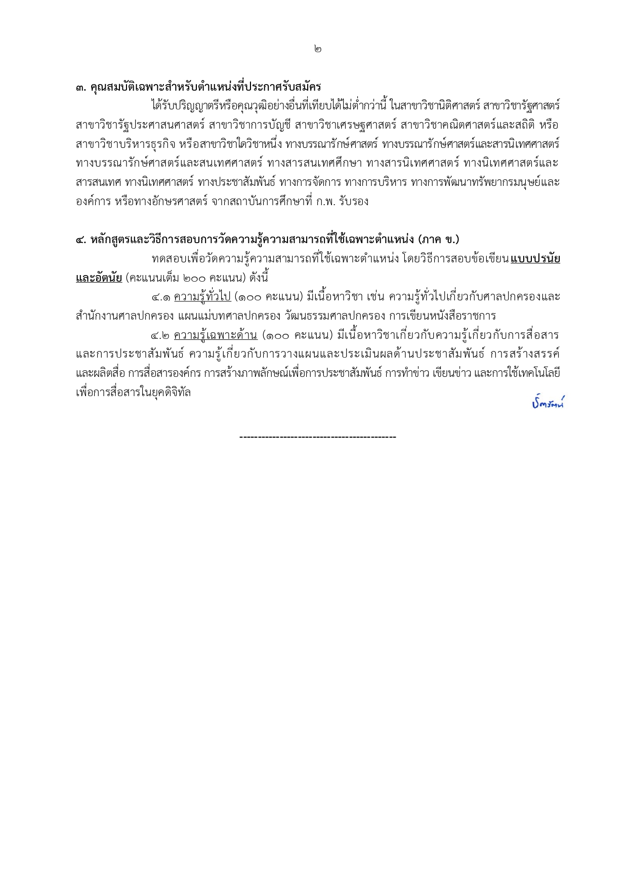 ตำแหน่งเจ้าหน้าที่ศาลปกครองปฏิบัติการ (ด้านประชาสัมพันธ์) จำนวน 1 อัตรา