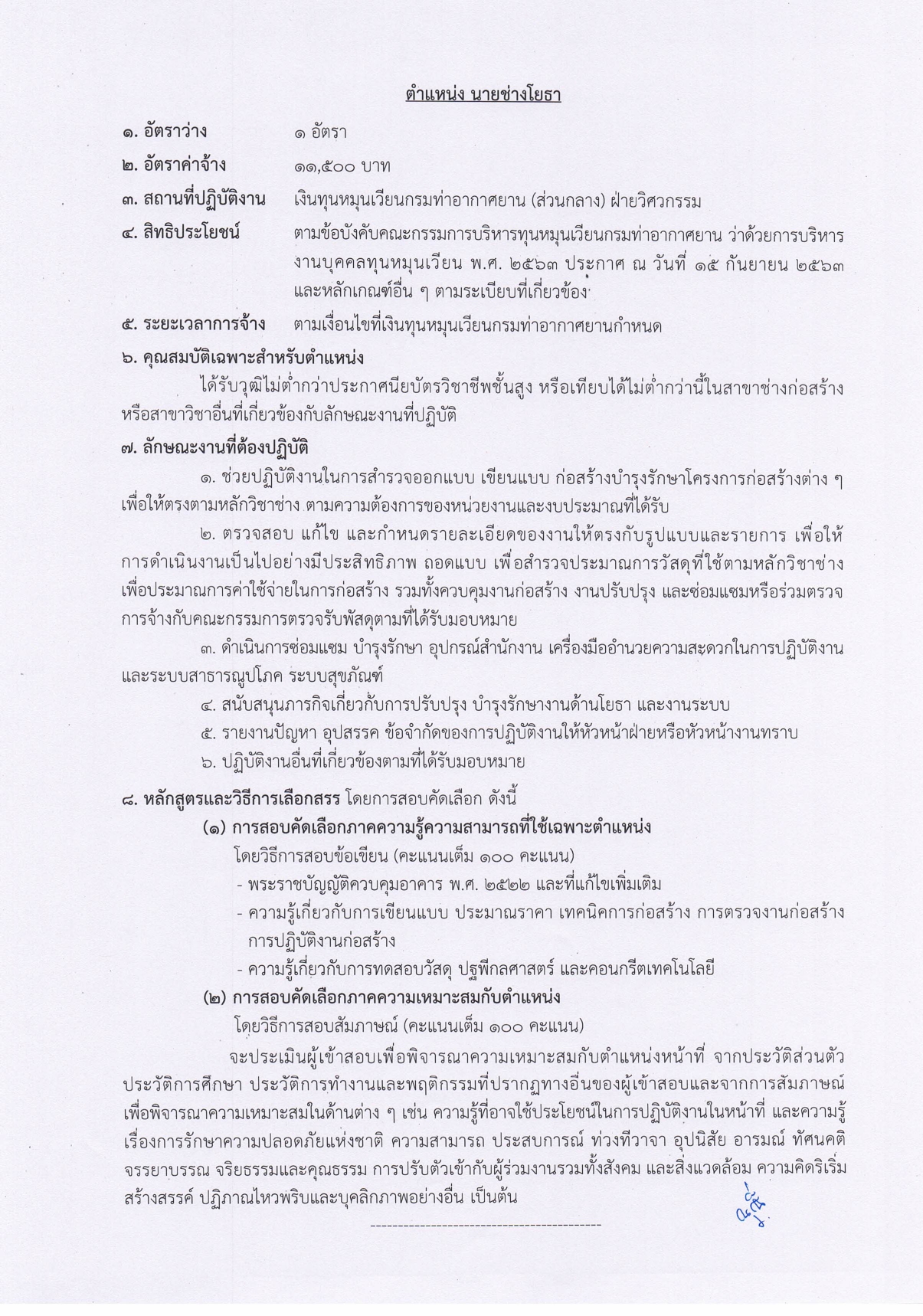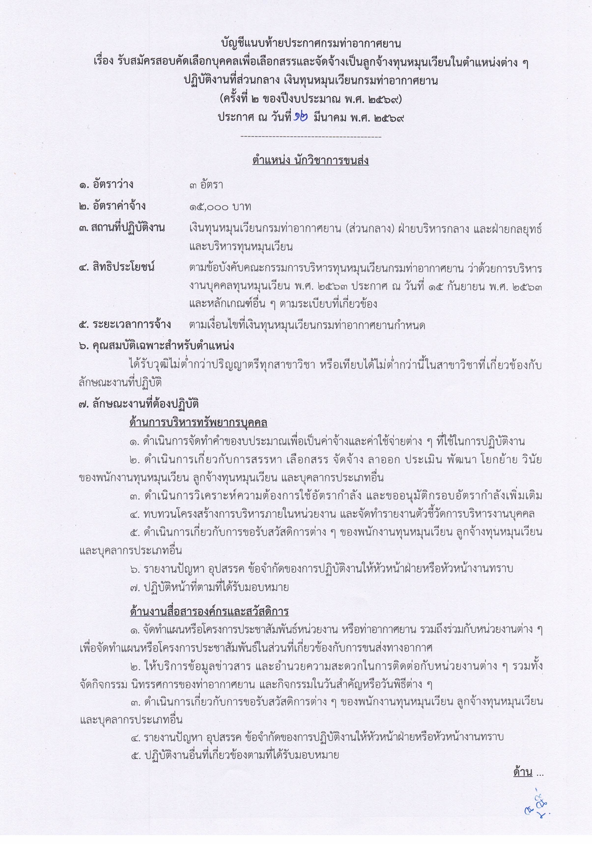 ด้วยเงินทุนหมุนเวียนกรมท่าอากาศยาน มีความประสงค์จะรับสมัครสอบคัดเลือกบุคคลเพื่อเลือกสรรและจัดจ้างเป็นลูกจ้างทุนหมุนเวียน