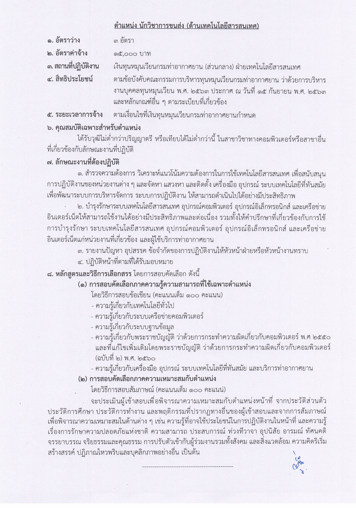 1.2 ตำแหน่ง นักวิชาการขนส่ง (ด้านเทคโนโลยีสารสนเทศ) (จำนวน 3 อัตรา)