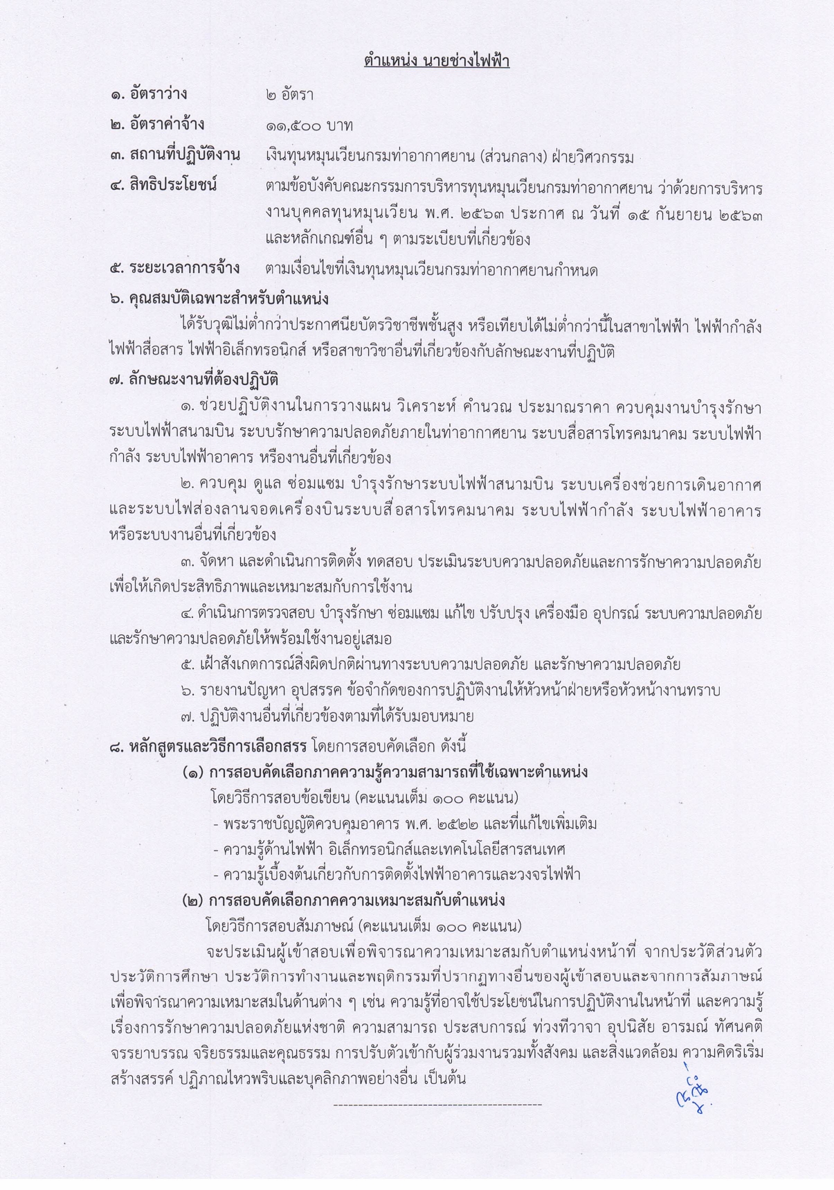 1.6 ตำแหน่ง นายช่างไฟฟ้า (จำนวน 2 อัตรา)