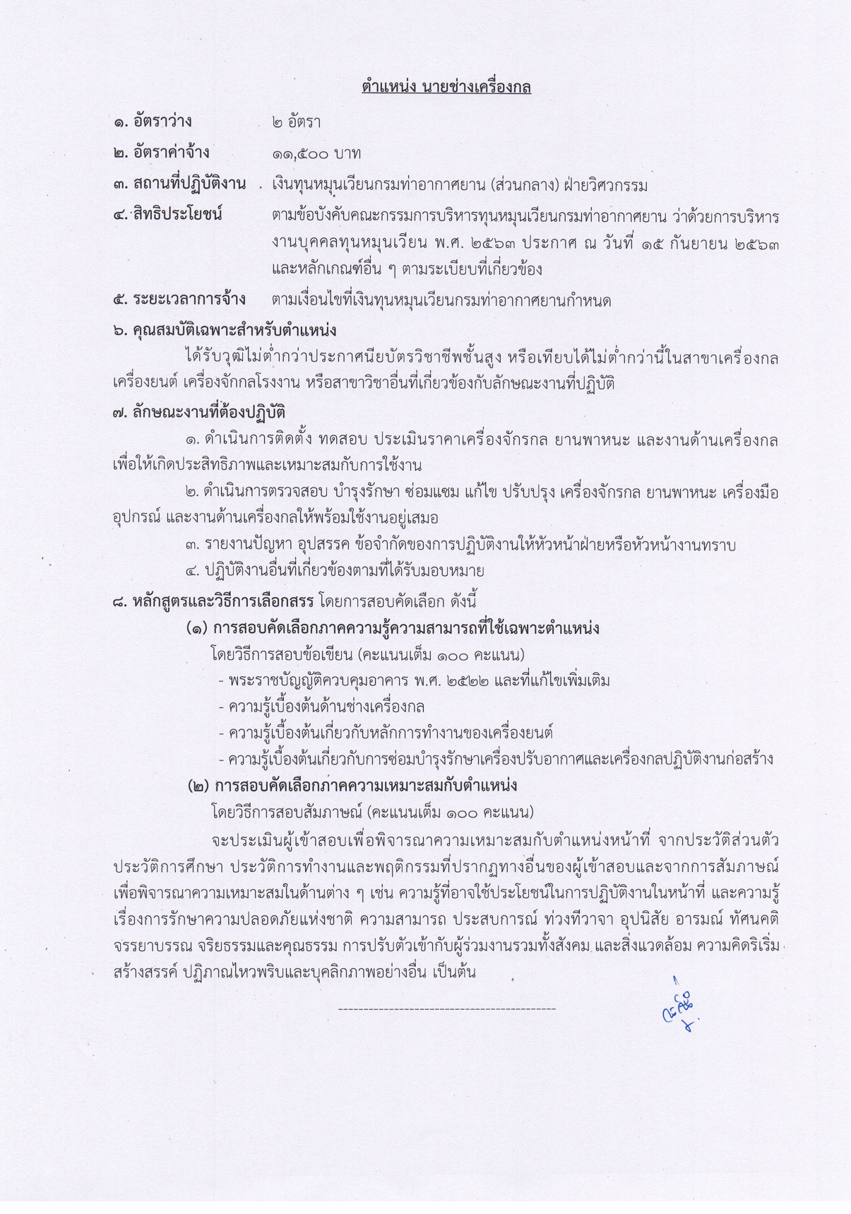 1.7 ตำแหน่ง นายช่างเครื่องกล (จำนวน 2 อัตรา)