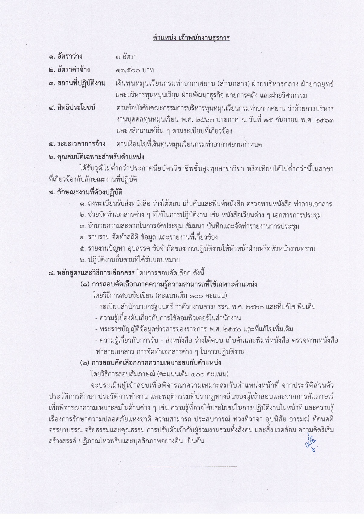 1.4 ตำแหน่ง เจ้าพนักงานธุรการ (จำนวน 7 อัตรา)