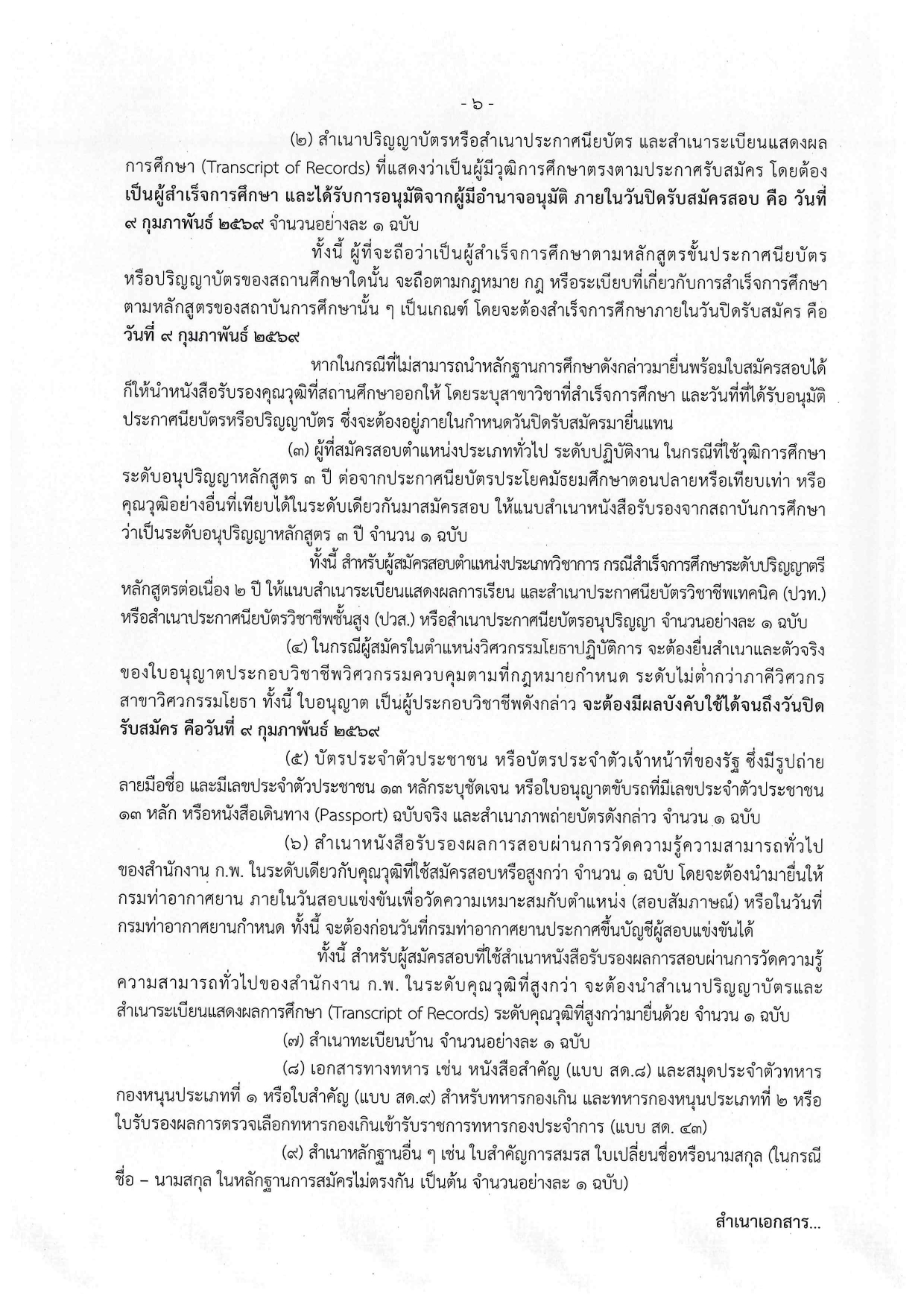 การสำเร็จการศึกษา: ผู้สมัครจะต้องสำเร็จการศึกษาและได้รับอนุมัติจากผู้มีอำนาจอนุมัติ ภายในวันปิดรับสมัครสอบ คือ วันที่ 9 กุมภาพันธ์ 2569