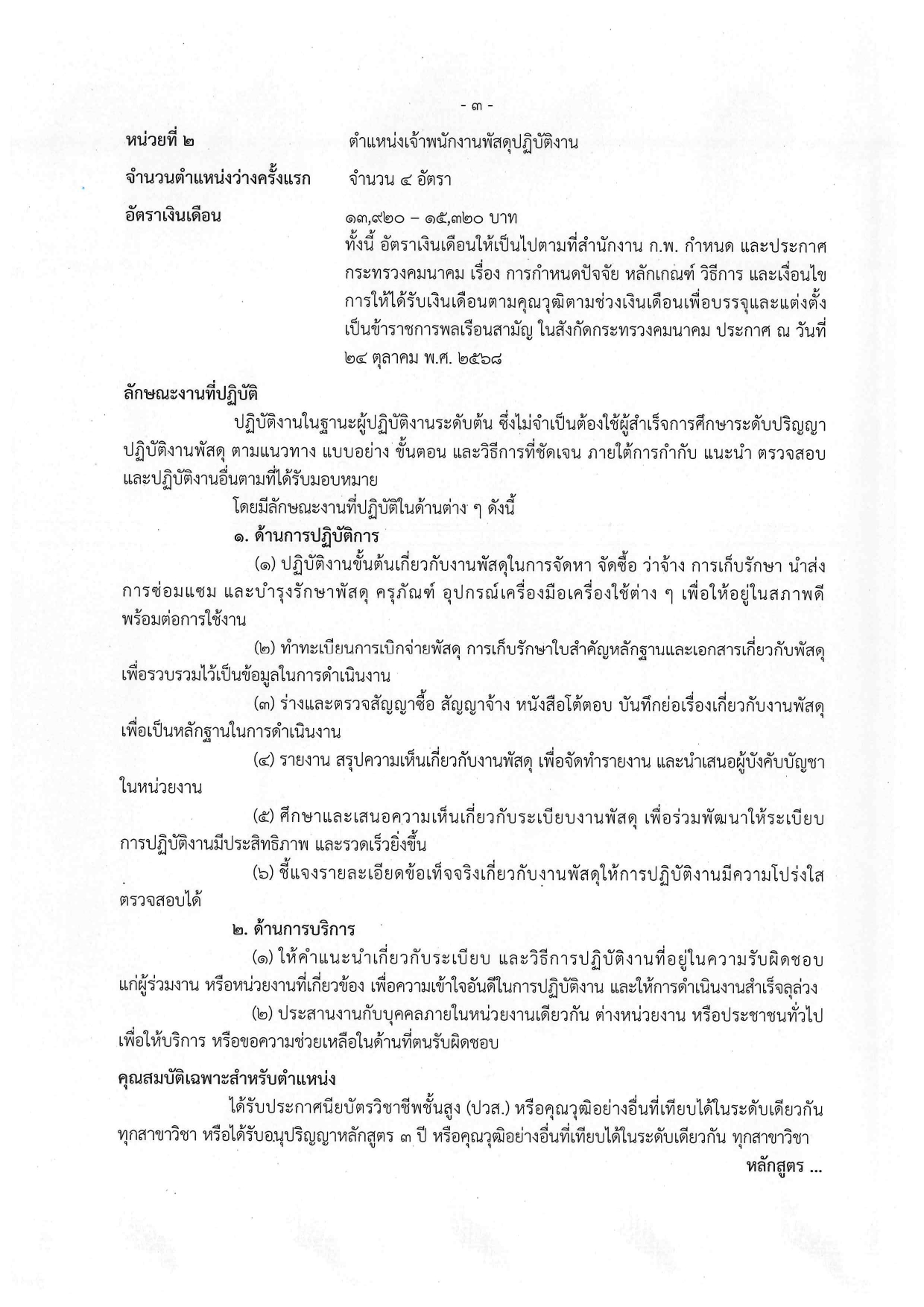 หน่วยที่ 2: เจ้าพนักงานพัสดุปฏิบัติงาน (จำนวน 4 อัตรา)
