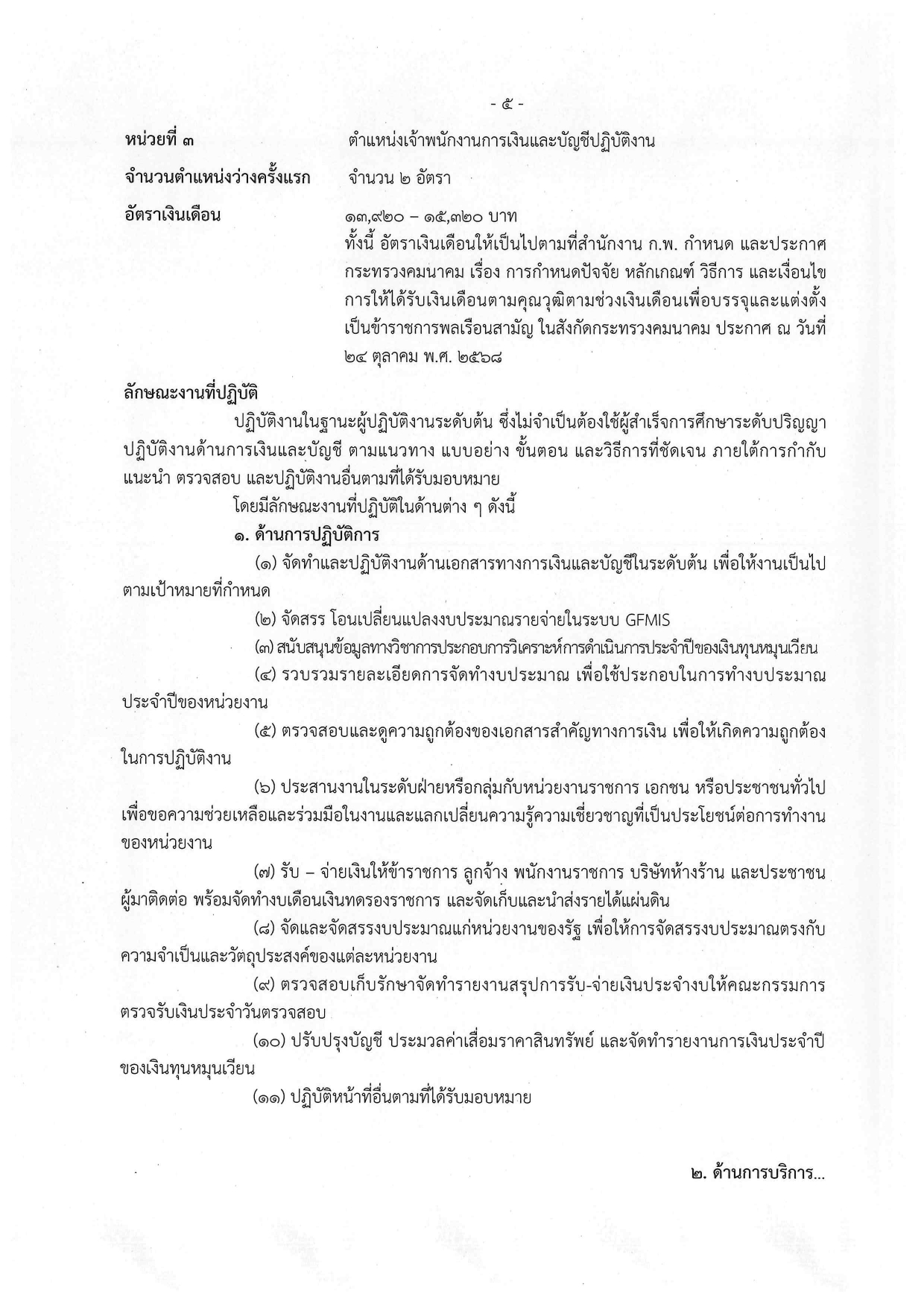 หน่วยที่ 3: เจ้าพนักงานการเงินและบัญชีปฏิบัติงาน (จำนวน 2 อัตรา)