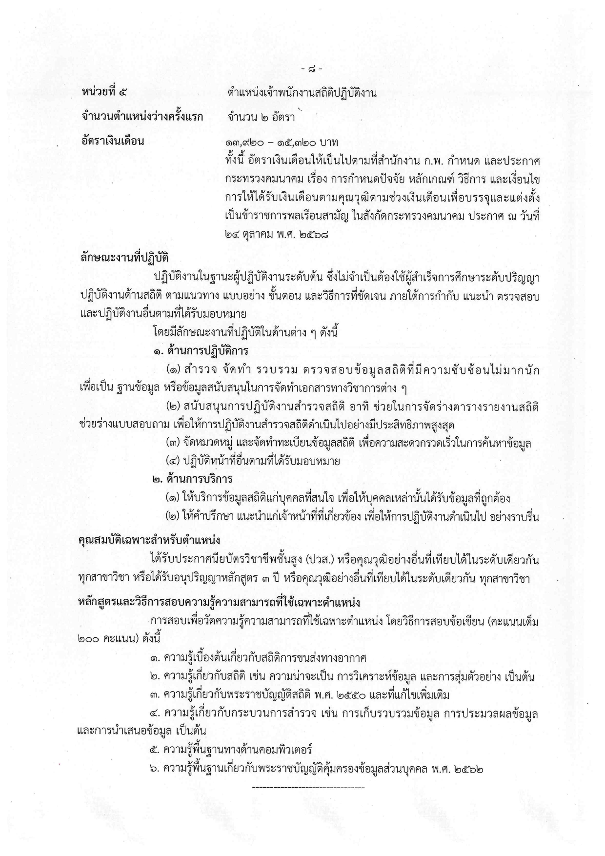 หน่วยที่ 5: เจ้าพนักงานสถิติปฏิบัติงาน (จำนวน 2 อัตรา)