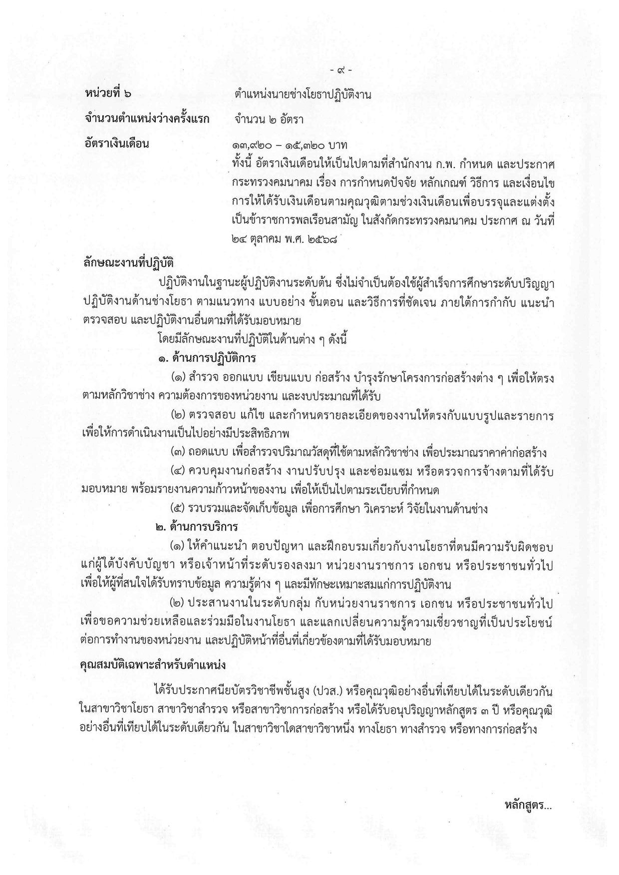 หน่วยที่ 6: นายช่างโยธาปฏิบัติงาน (จำนวน 2 อัตรา)