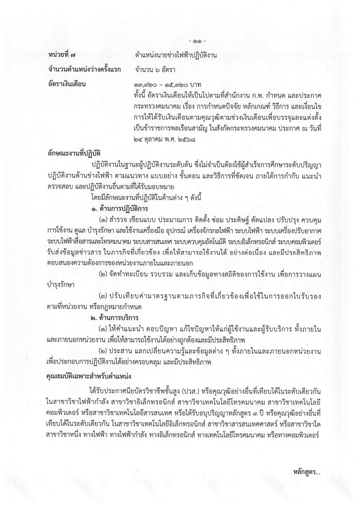 หน่วยที่ 7: นายช่างไฟฟ้าปฏิบัติงาน (จำนวน 5 อัตรา)