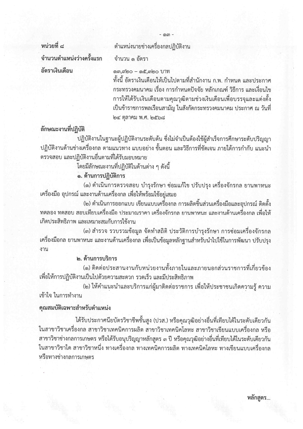 หน่วยที่ 8: นายช่างเครื่องกลปฏิบัติงาน (จำนวน 1 อัตรา)