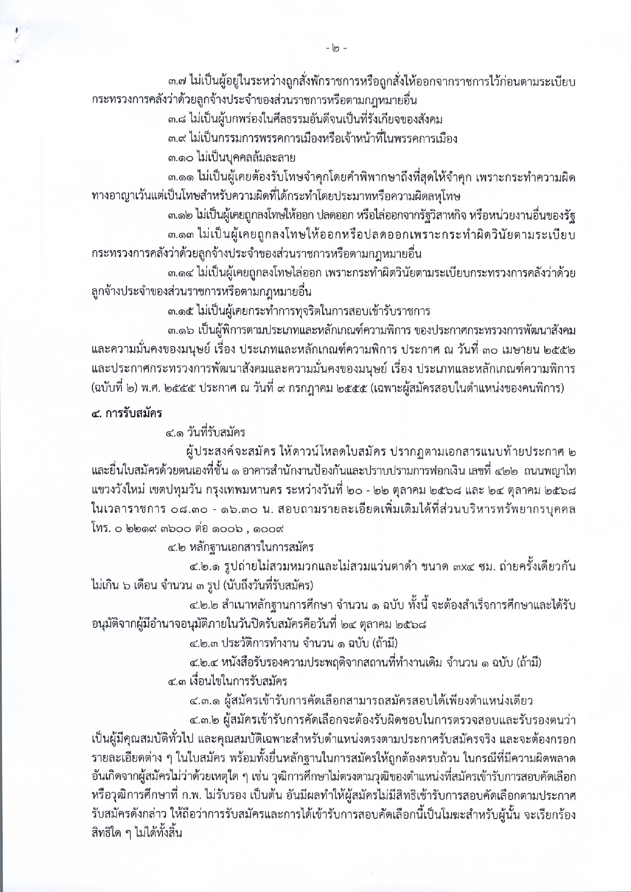 (เฉพาะตำแหน่งคนพิการ): ต้องเป็นผู้พิการตามประเภทและหลักเกณฑ์ที่กระทรวงการพัฒนาสังคมฯ กำหนด