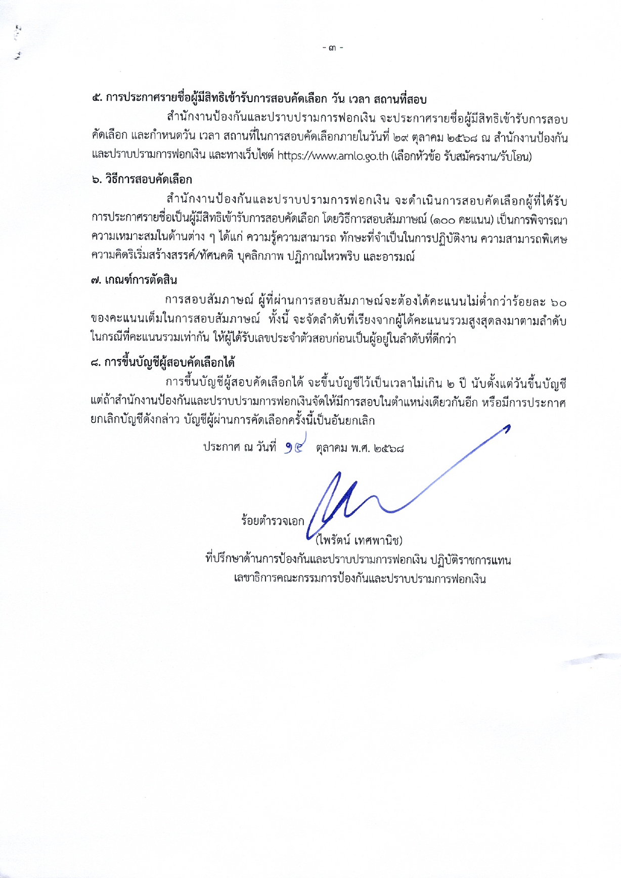 สำนักงานป้องกันและปราบปรามการฟอกเงิน รับสมัครงาน 61 อัตรา / ปวส. และ ป.ตรี ทุกสาขา อื่นๆ / ไม่ต้องผ่าน ภาค ก ของ กพ. / เงินเดือน 16500 / สมัคร 20 – 24 ตุลาคม 2568