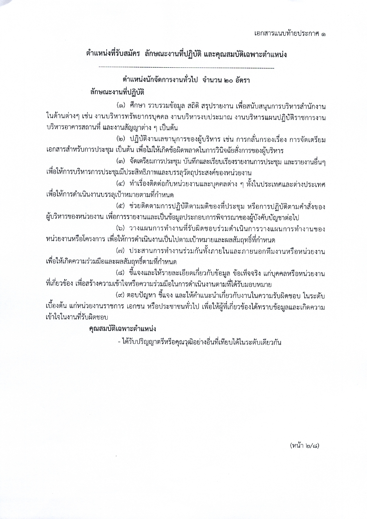 นักจัดการงานทั่วไป จำนวน 20 อัตรา