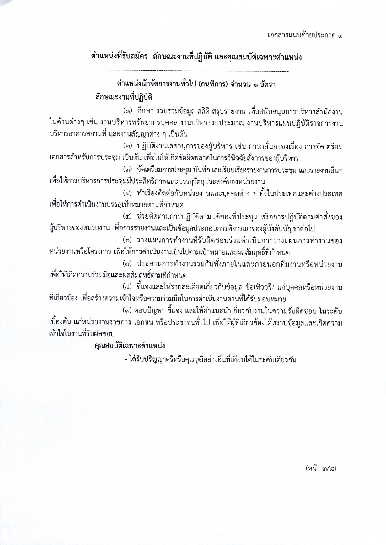 นักจัดการงานทั่วไป (คนพิการ) จำนวน 1 อัตรา