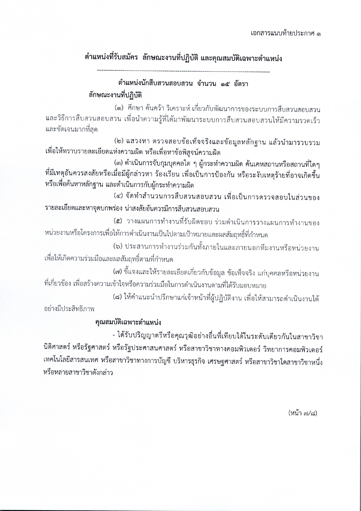 นักสืบสวนสอบสวน จำนวน 15 อัตรา