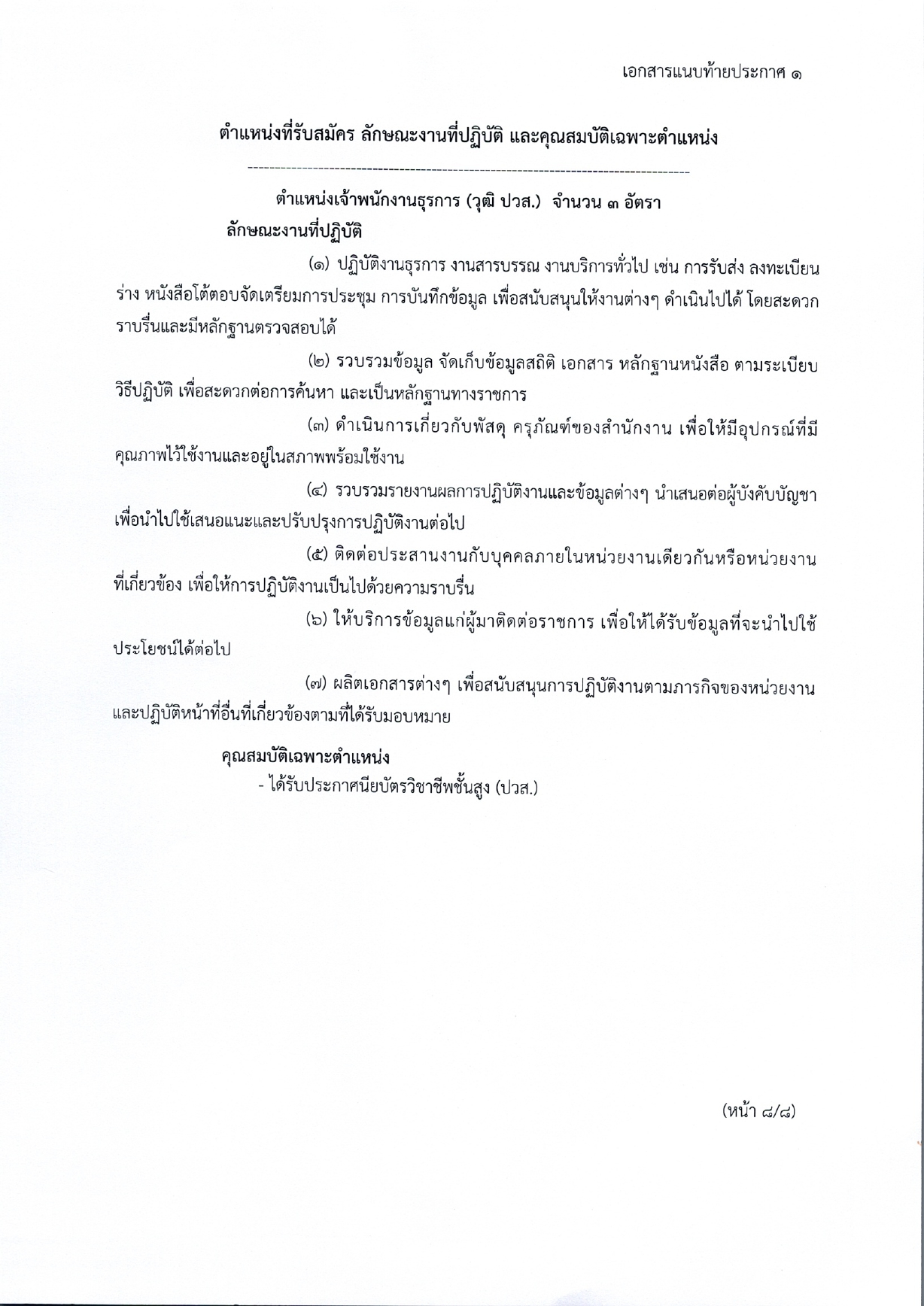 เจ้าพนักงานธุรการ (วุฒิ ปวส.) จำนวน 3 อัตรา