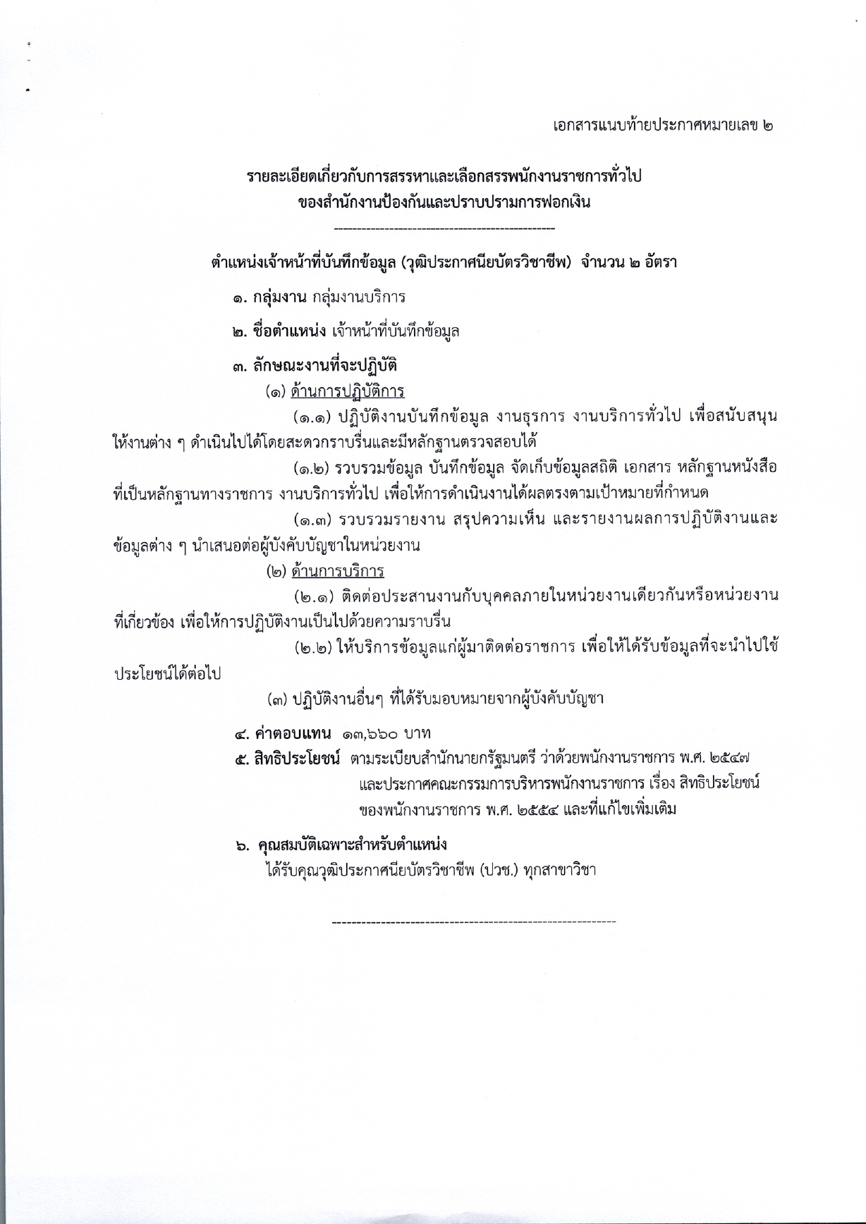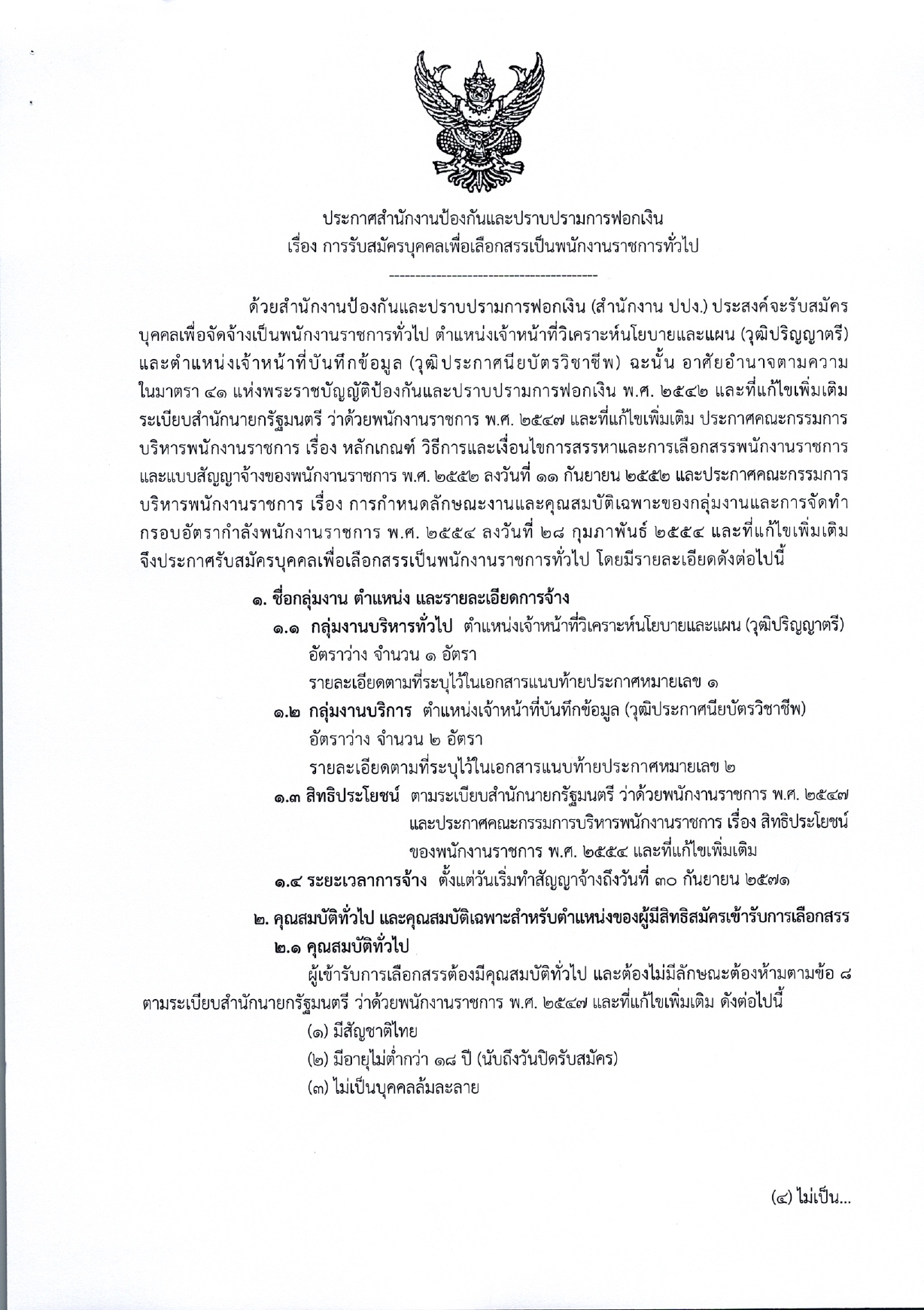 สำนักงาน ปปง. เปิดรับสมัครพนักงานราชการ 2 ตำแหน่ง (วุฒิ ปวช. และ ป.ตรี) เงินเดือนสูงสุด 21,780 บาท