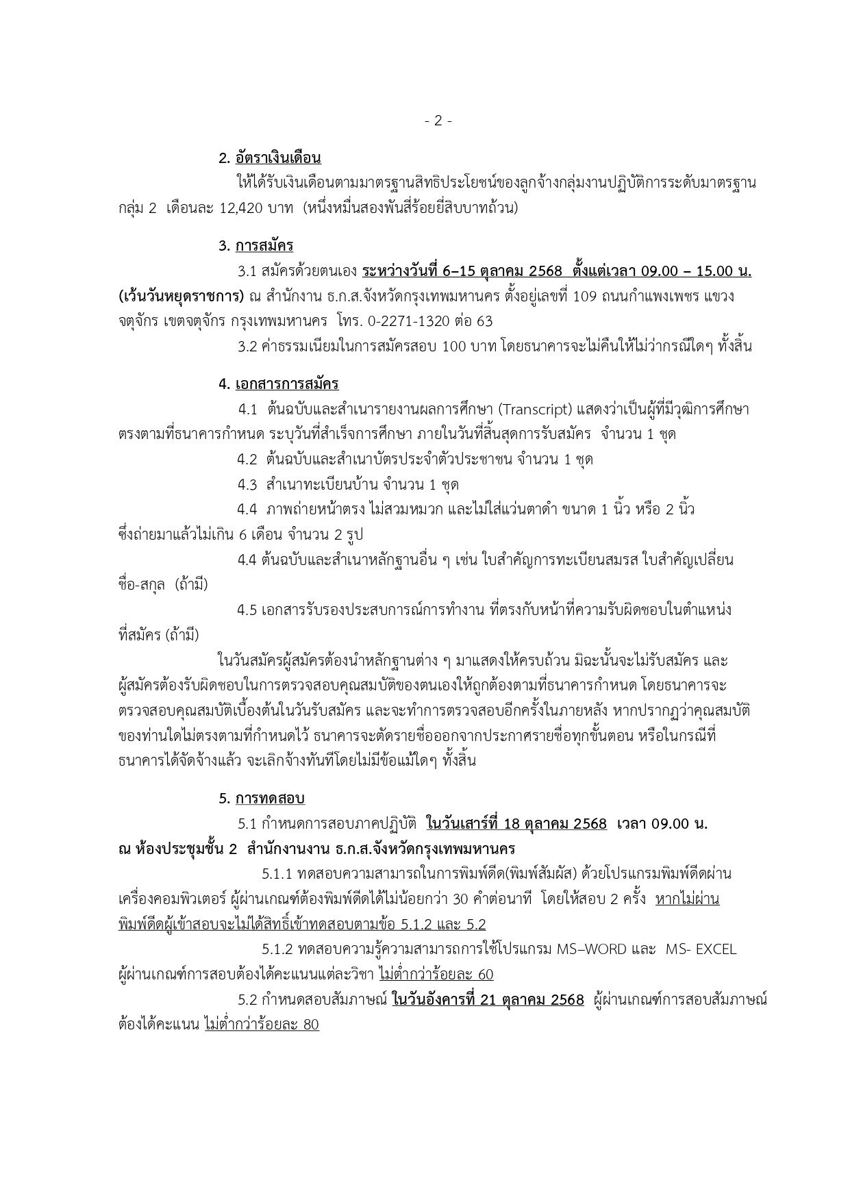 ตำแหน่ง ผู้ช่วยพนักงานธุรการ ประจำสำนักงาน ธ.ก.ส. จังหวัดกรุงเทพมหานคร