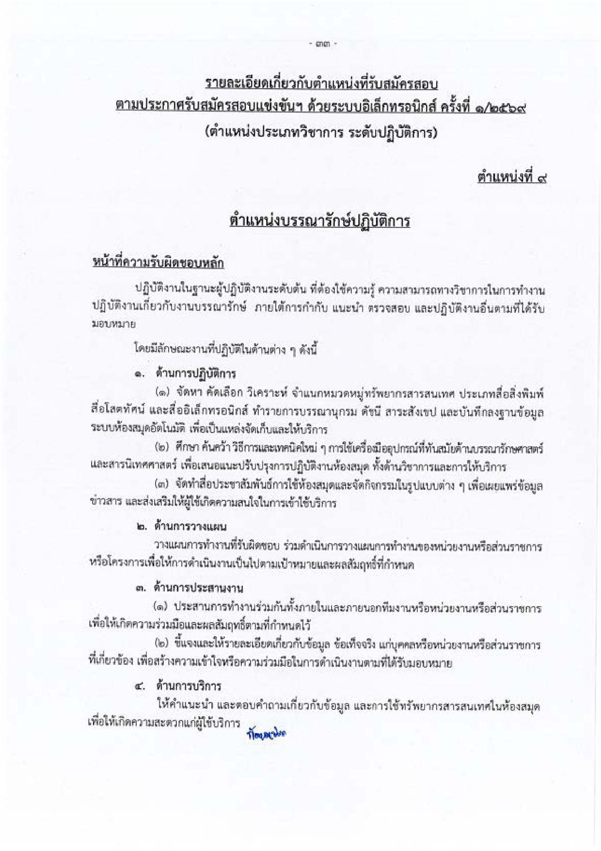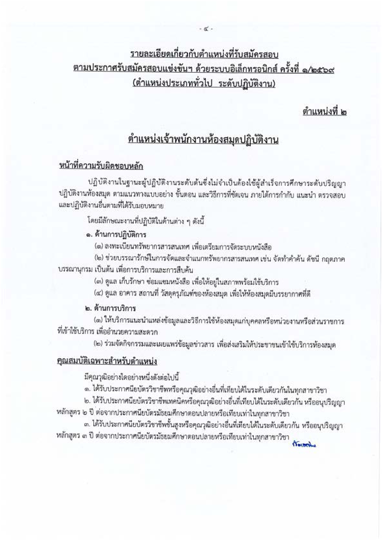 บรรณารักษ์ปฏิบัติการ – จำนวน 1 อัตรา