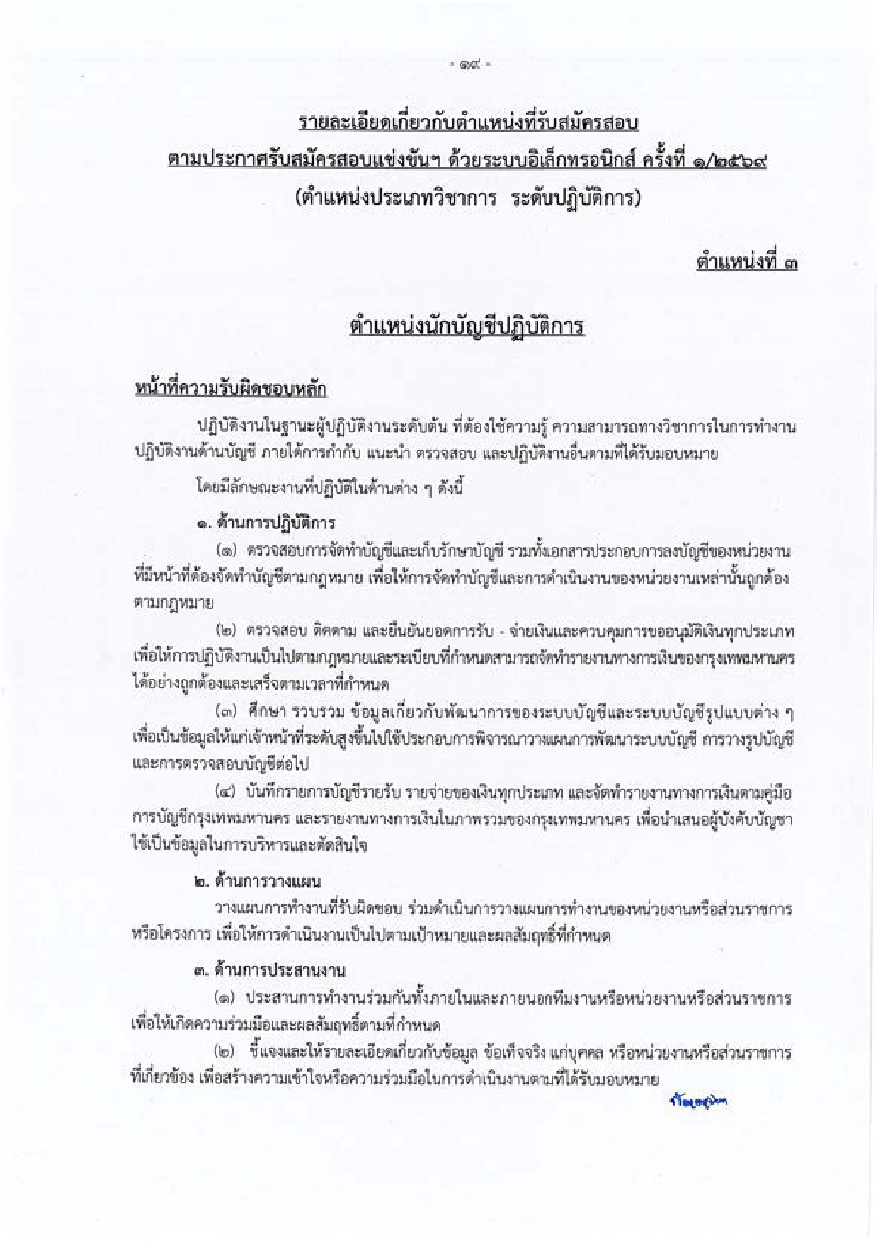 นักวิชาการเงินและบัญชีปฏิบัติการ – จำนวน 1 อัตรา