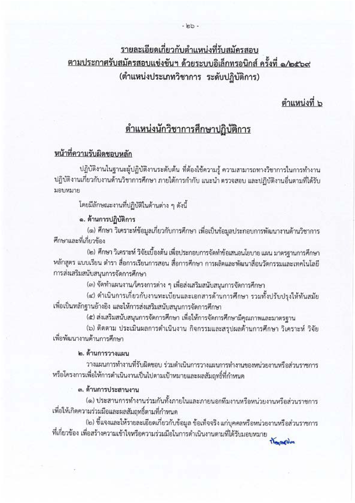 2. ประเภทวิชาการ ระดับปฏิบัติการ (จำนวน 26 อัตรา)