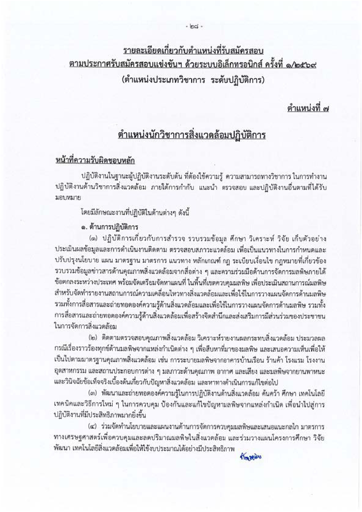 นักวิชาการสิ่งแวดล้อมปฏิบัติการ – จำนวน 1 อัตรา