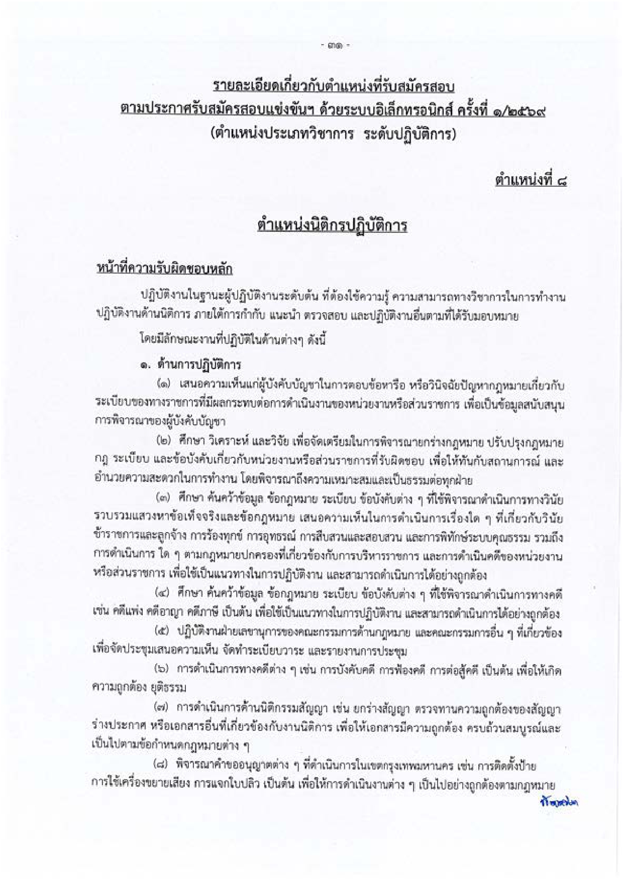 นิติกรปฏิบัติการ – จำนวน 1 อัตรา