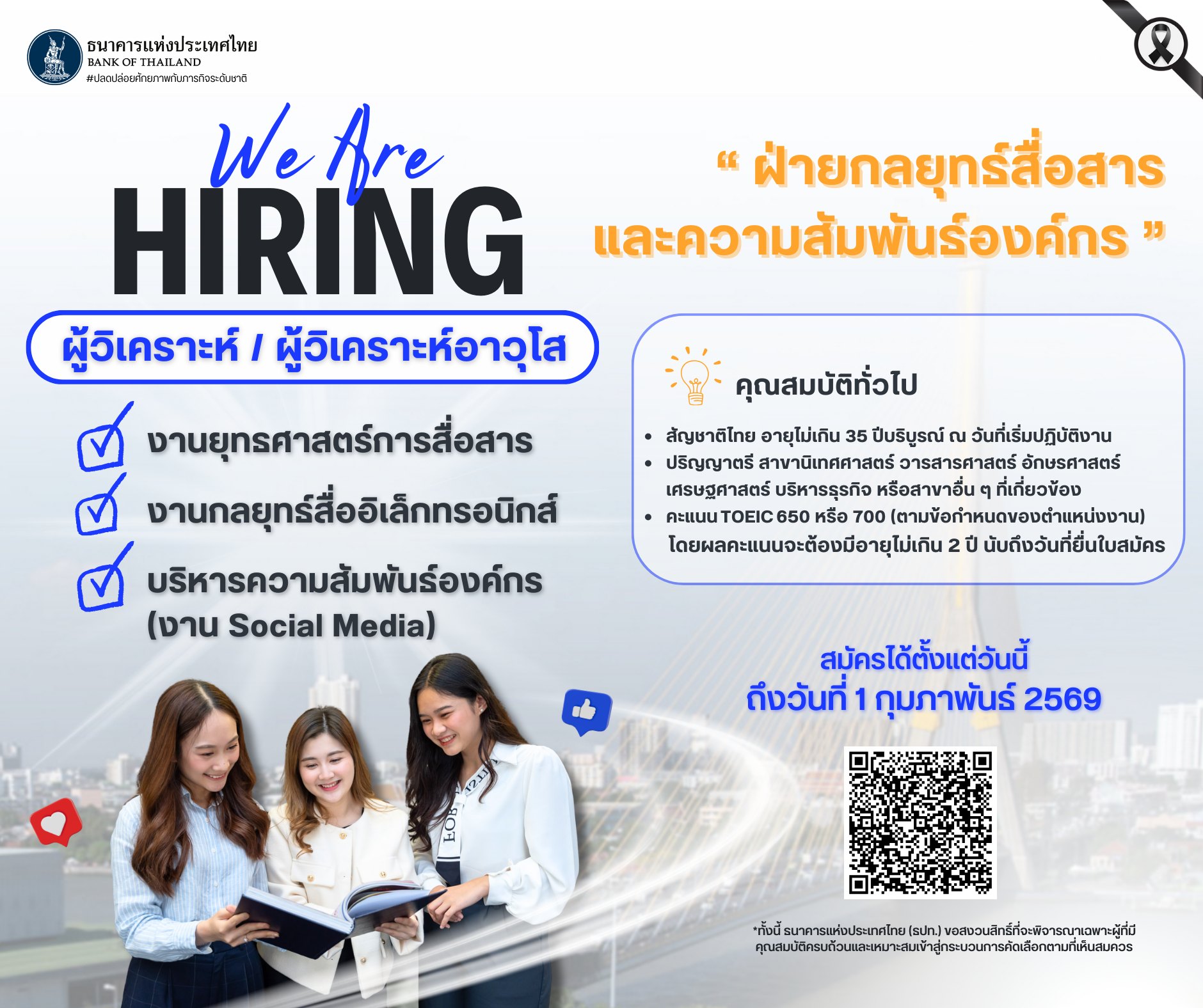 สมัครทาง https://www.bot.or.th/th/about-us/recruitment.html
