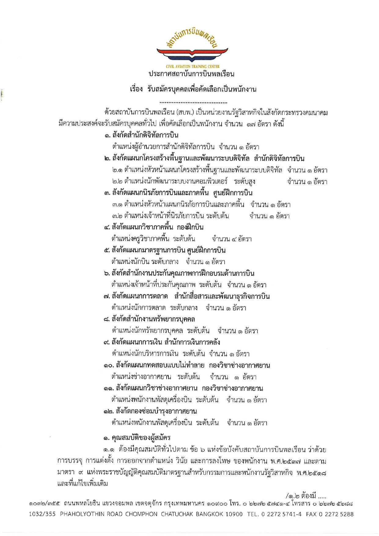 สถาบันการบินพลเรือน (หน่วยงานรัฐวิสาหกิจ สังกัดกระทรวงคมนาคม) มีความประสงค์จะรับสมัครบุคคลทั่วไปเพื่อบรรจุเป็นพนักงาน จำนวน 17 อัตรา ดังนี้