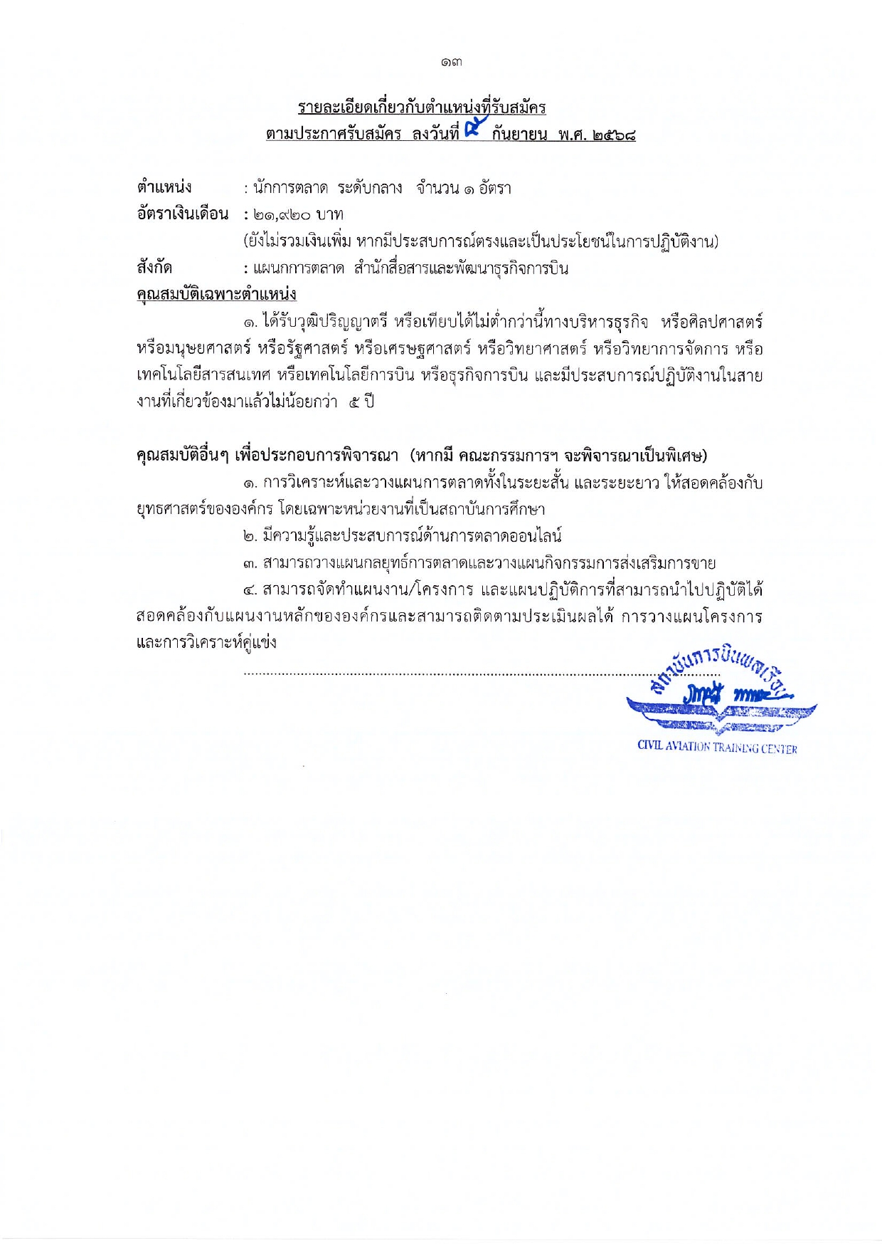 7. แผนกการตลาด (สำนักสื่อสารและพัฒนาธุรกิจการบิน)