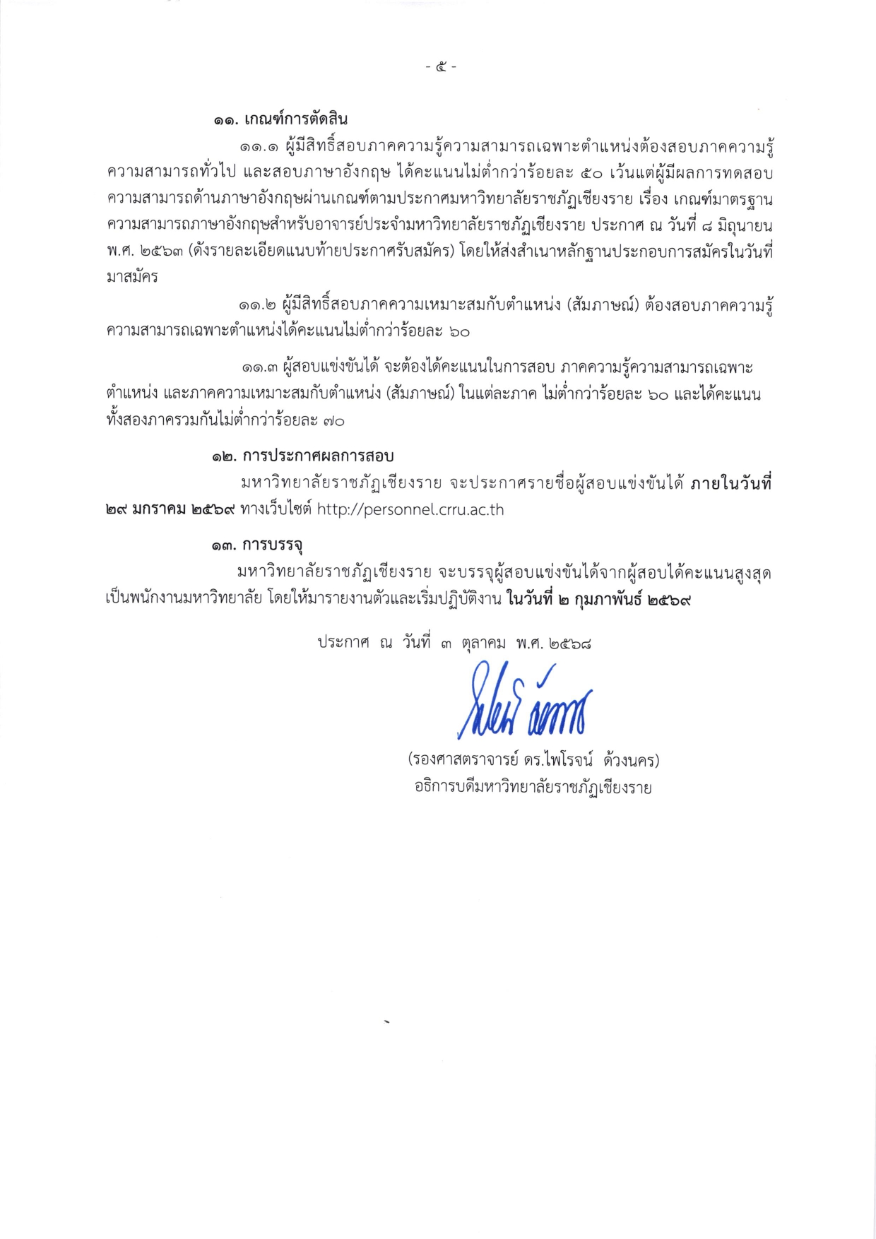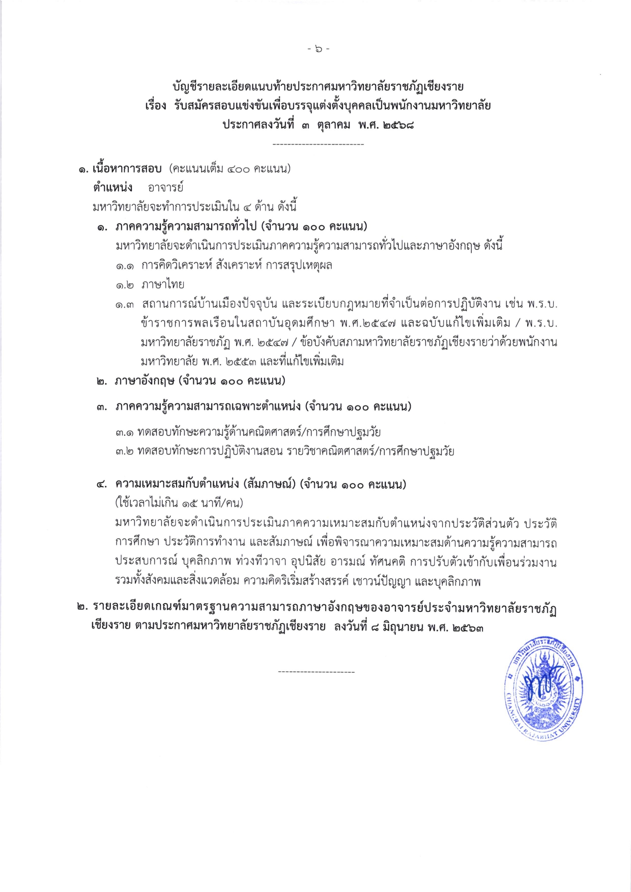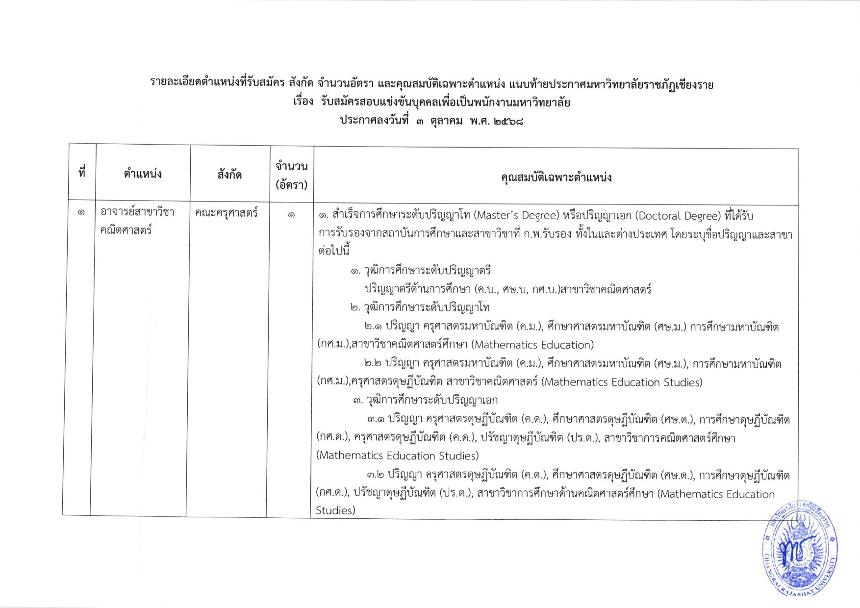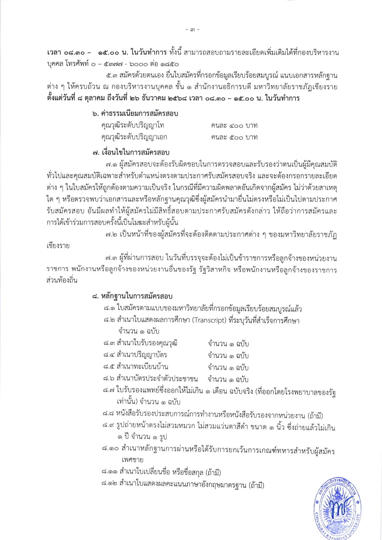 มหาวิทยาลัยราชภัฏเชียงราย รับสมัครคัดเลือกบุคคลเพื่อบรรจุแต่งตั้งเป็นพนักงานมหาวิทยาลัย / ไม่ต้องผ่าน ภาค ก ของ กพ. / สมัคร 8 ตุลาคม – 24 ธันวาคม 2568