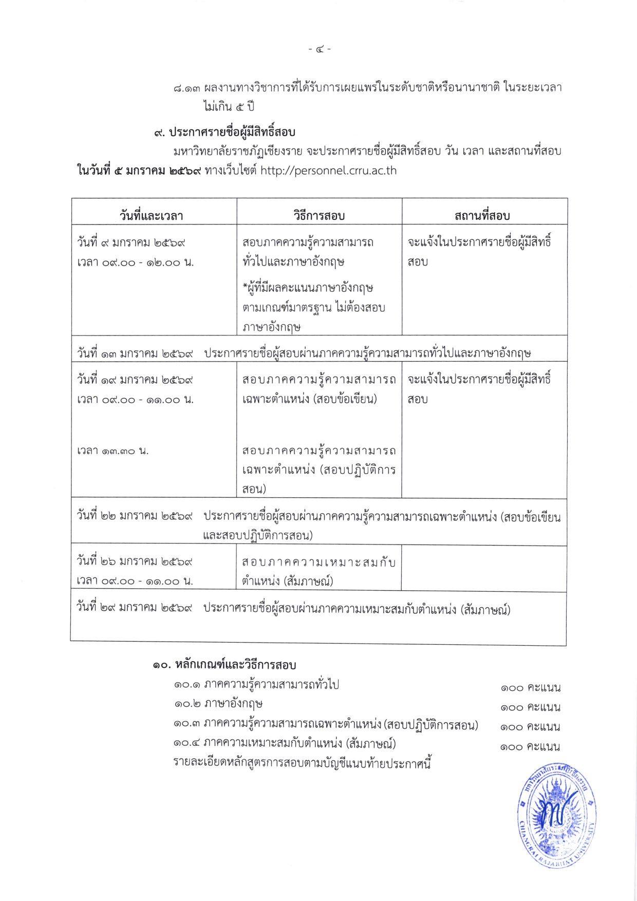 5. วัน เวลา และสถานที่การรับสมัคร ผู้ประสงค์จะสมัครสามารถดาวน์โหลดใบสมัครได้ที่เว็บไซต์ http://personnel.crru.ac.th