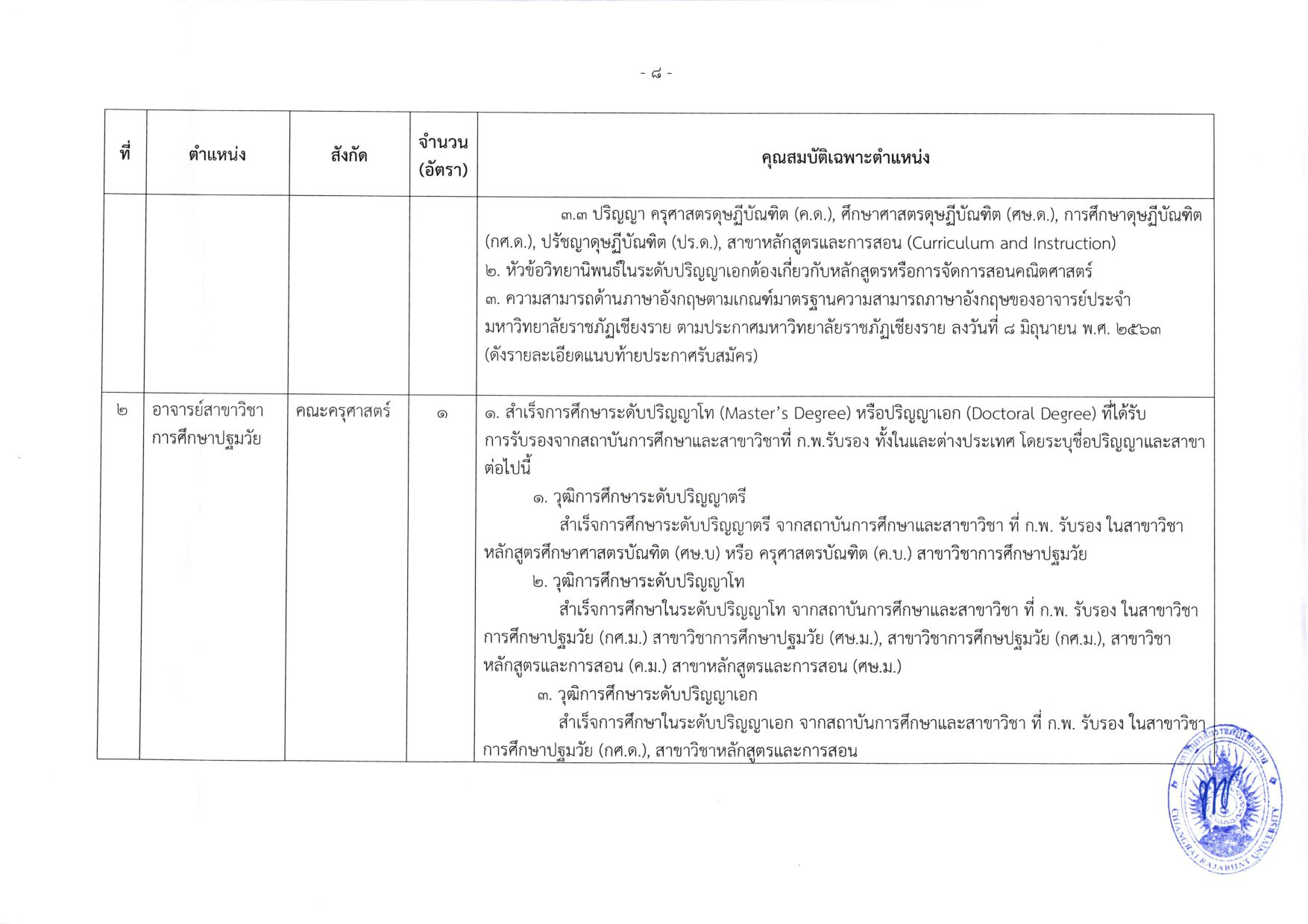 ตำแหน่งอาจารย์ สาขาวิชาการศึกษาปฐมวัย สังกัดคณะครุศาสตร์ จำนวน 1 อัตรา