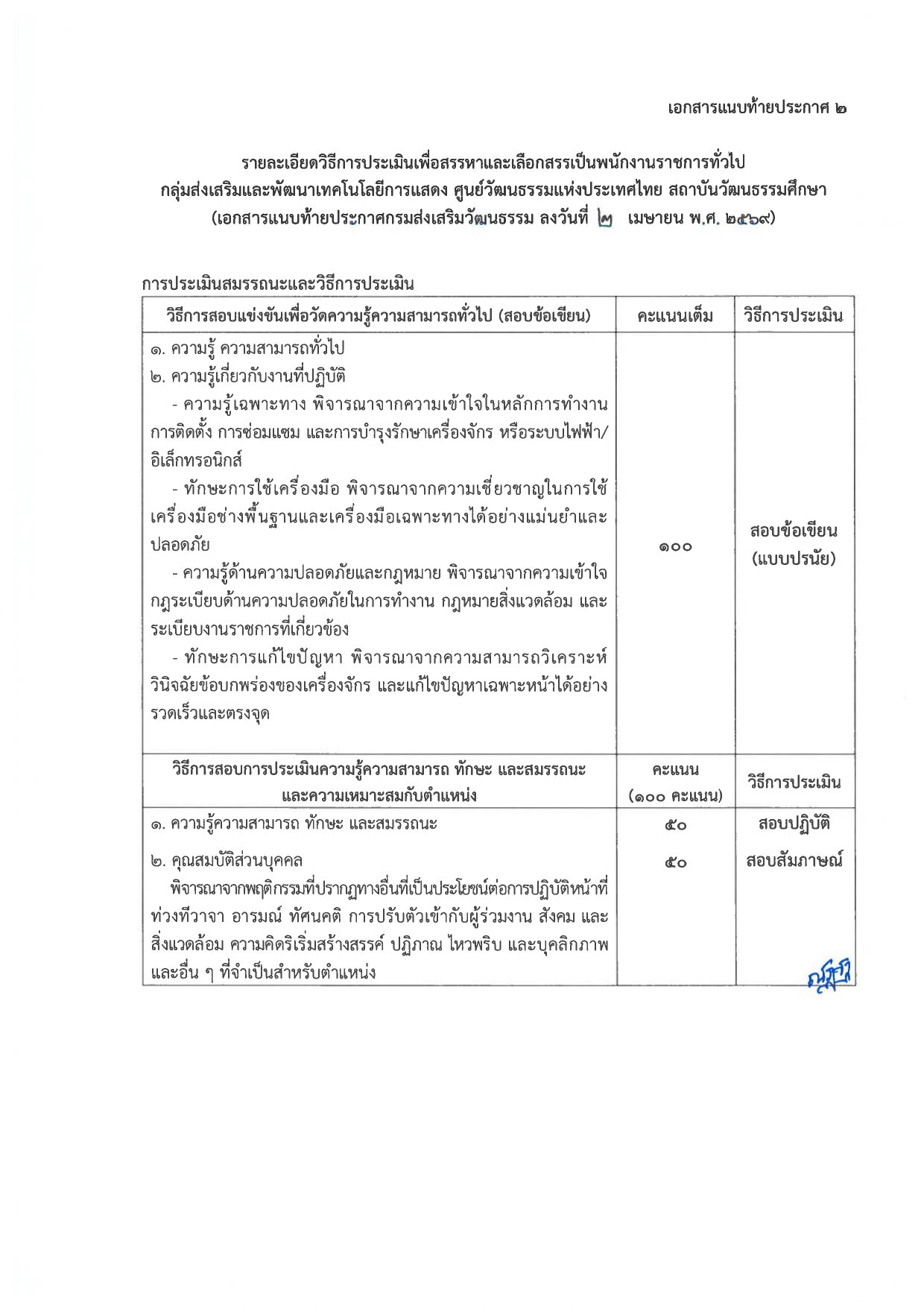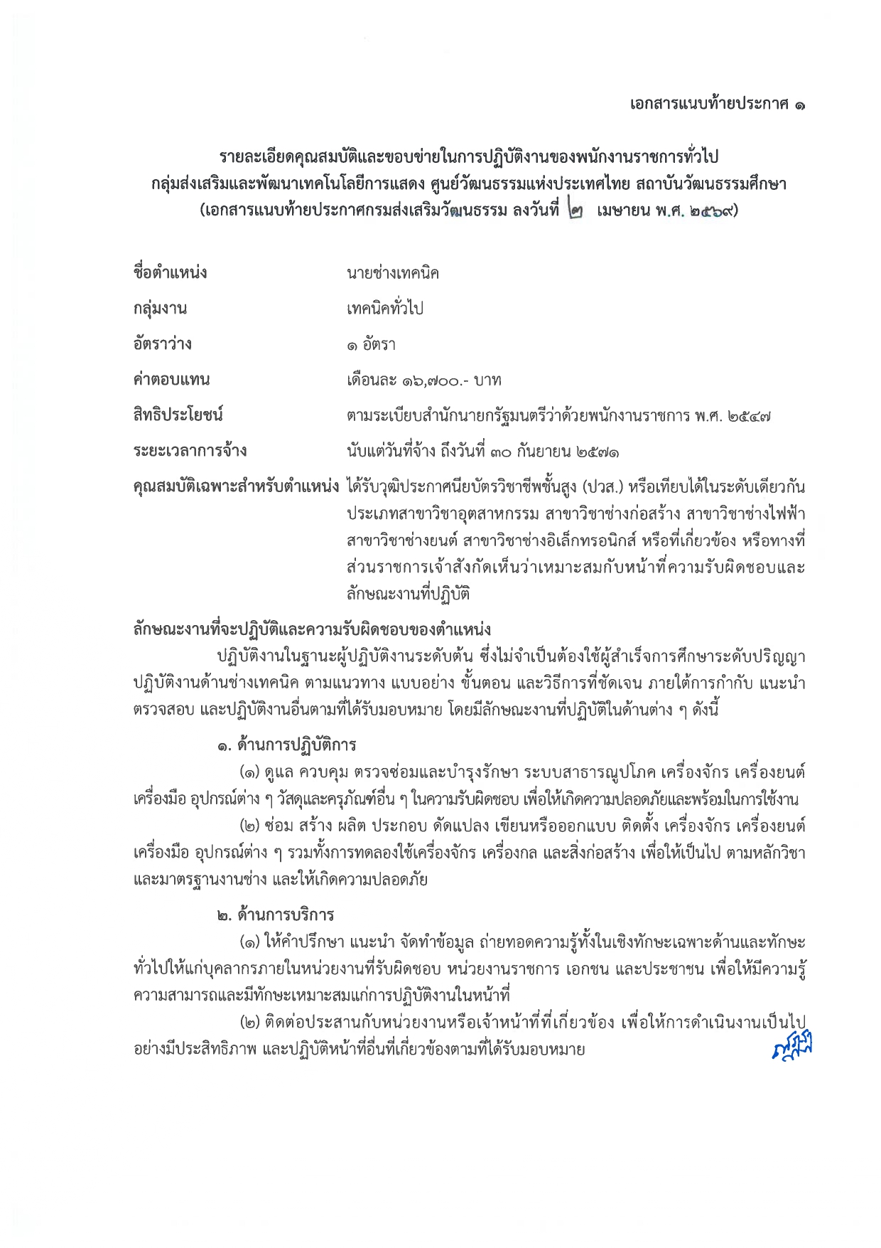 เพื่อปฏิบัติงานในสังกัดศูนย์วัฒนธรรมแห่งประเทศไทย โดยมีรายละเอียดดังต่อไปนี้