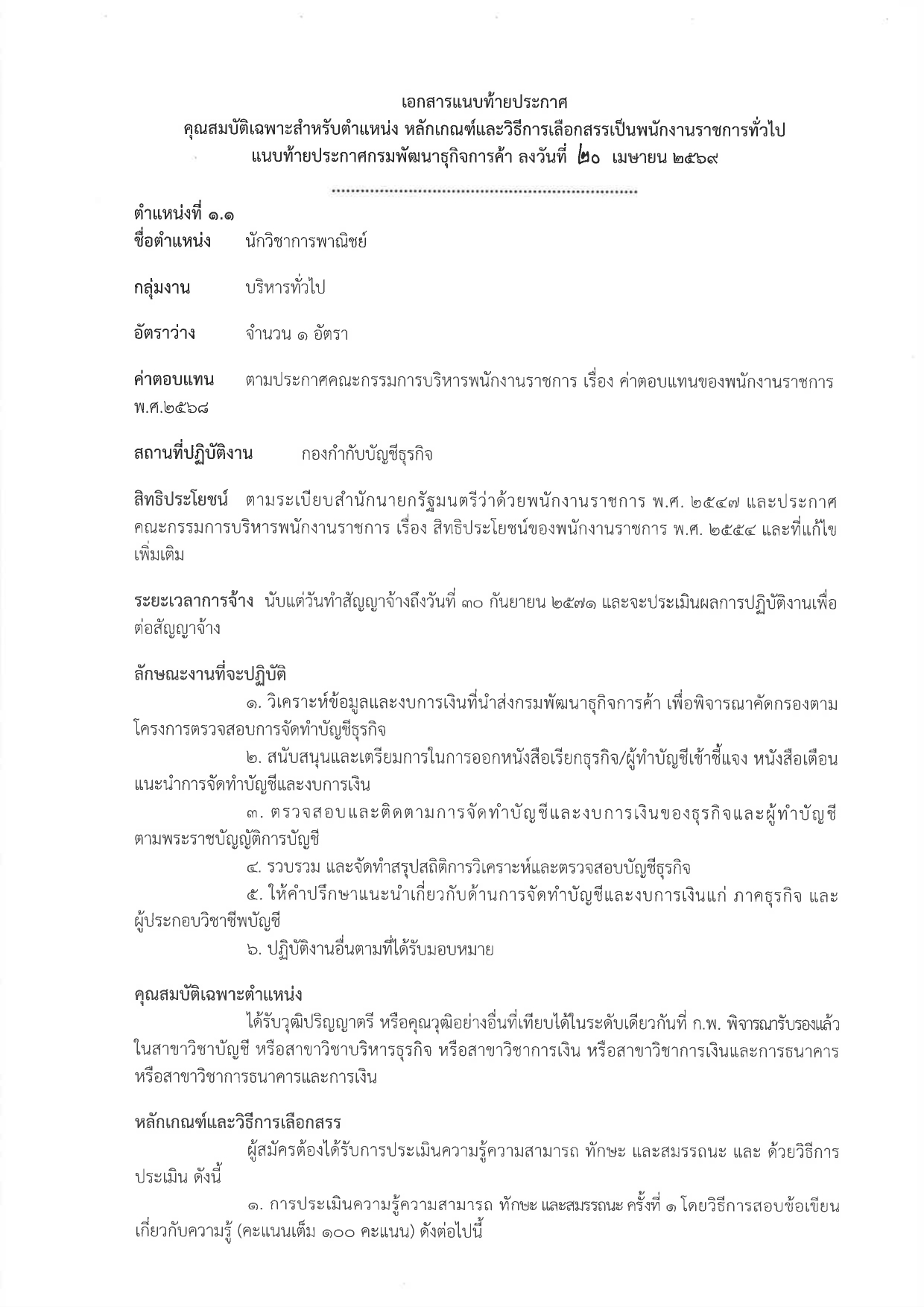 กรมพัฒนาธุรกิจการค้า รับสมัครบุคคลเพื่อเป็นพนักงานราชการ หลายตำแหน่ง / ป.ตรี ทุกสาขา และ อื่นๆ / เงินเดือน 21780 / สมัคร online 1 – 15 พฤษภาคม 2569