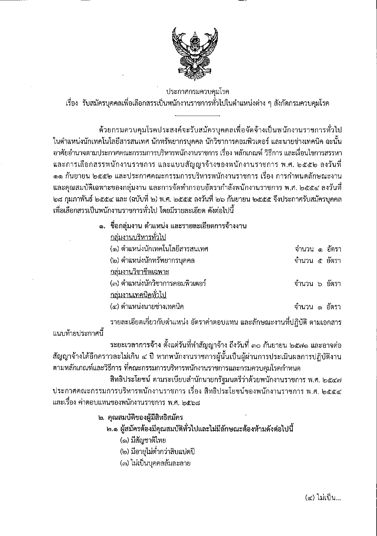 กรมควบคุมโรค ประสงค์จะรับสมัครบุคคลเพื่อจัดจ้างเป็นพนักงานราชการทั่วไป