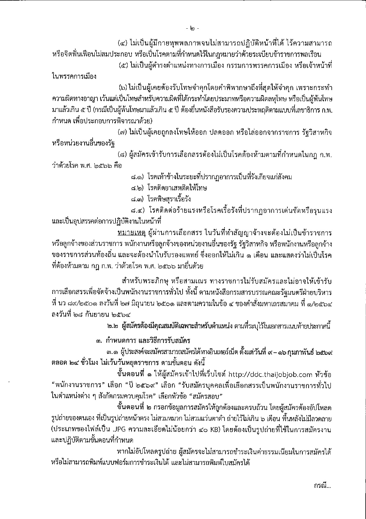 สอบถามรายละเอียดเพิ่มเติม: กลุ่มสรรหา กองบริหารทรัพยากรบุคคล กรมควบคุมโรค โทร. 0 2590 3059