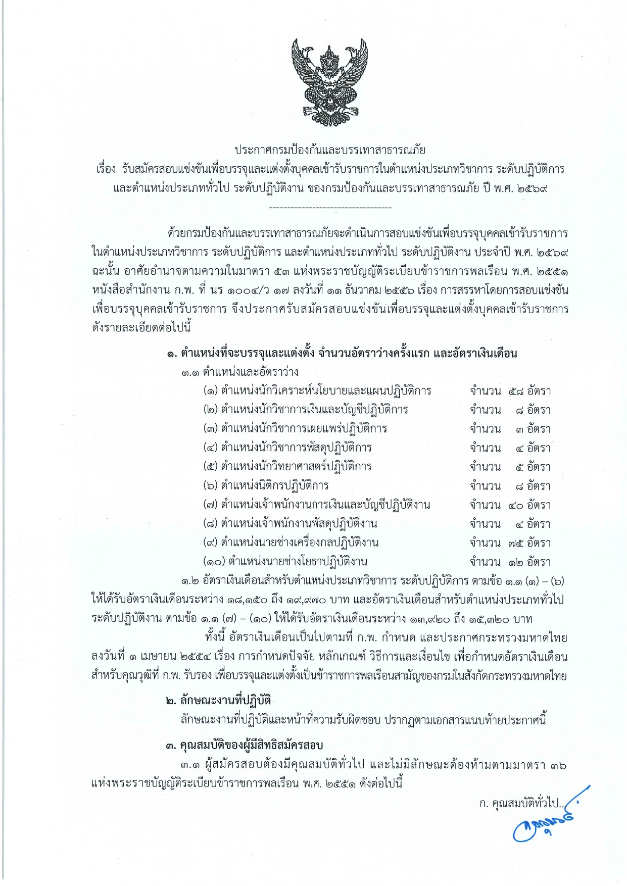 กรมป้องกันและบรรเทาสาธารณภัย เปิดรับสมัครสอบแข่งขันบรรจุเข้ารับราชการ 217 อัตรา / หลายตำแหน่ง / ปวส. และ ป.ตรี หลายสาขา / บรรจุทั่วประเทศ / เงินเดือน 18150 / สมัคร online 6 – 27 พฤษภาคม 2569เปิดรับสมัครสอบแข่งขันบรรจุเข้ารับราชการ