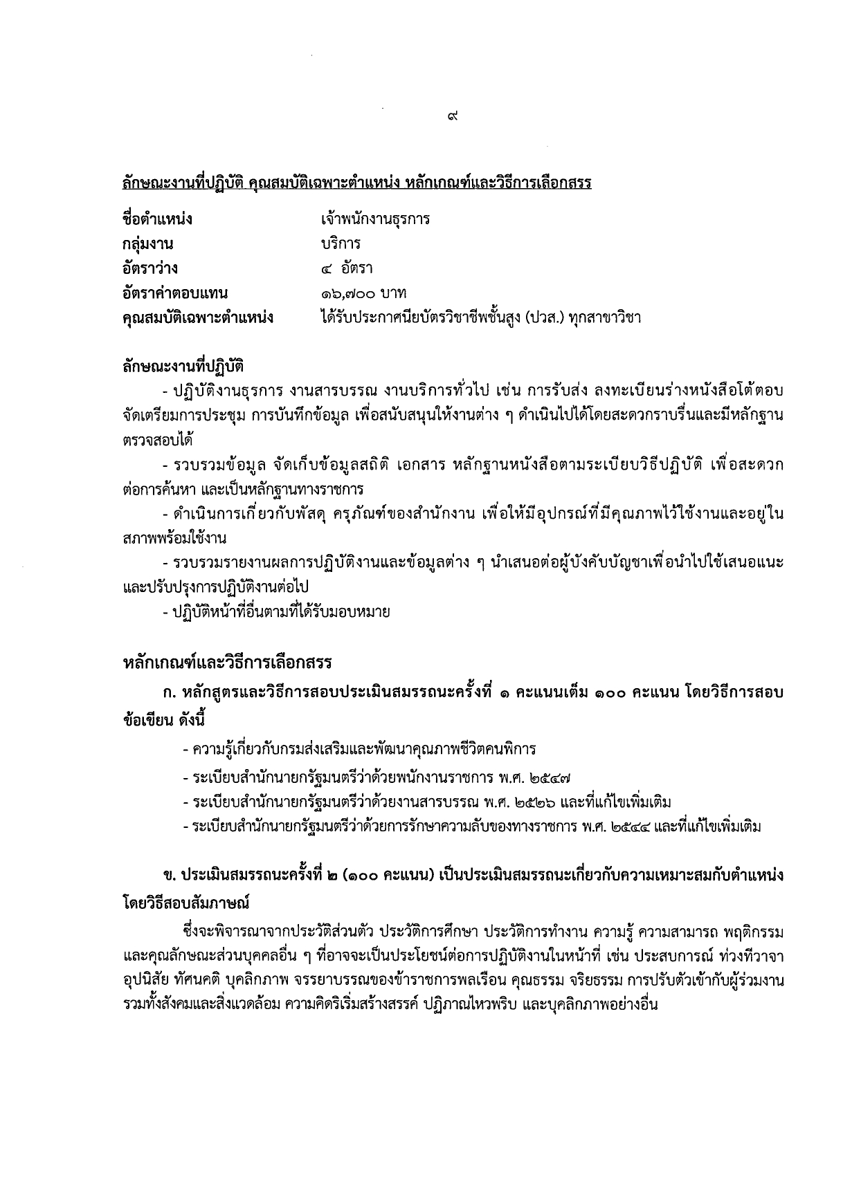 เจ้าพนักงานพัฒนาศักยภาพ (4 อัตรา): จ.ขอนแก่น, จ.อุบลราชธานี, จ.นนทบุรี, จ.ฉะเชิงเทรา