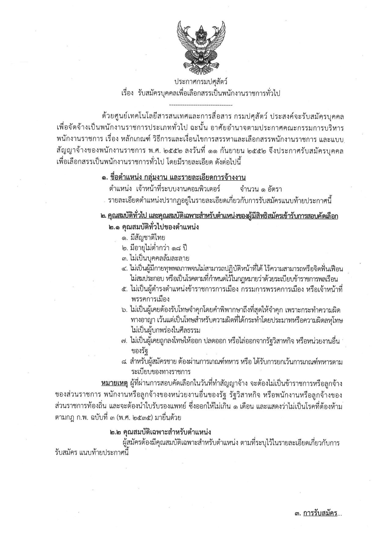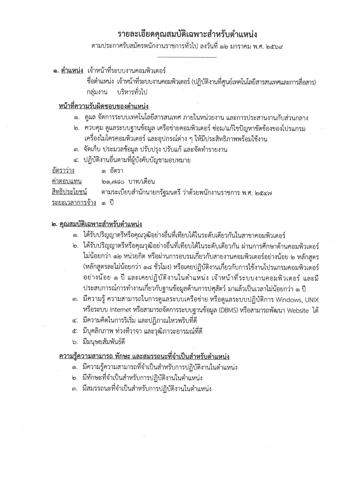 ชื่อตำแหน่ง: เจ้าหน้าที่ระบบงานคอมพิวเตอร์