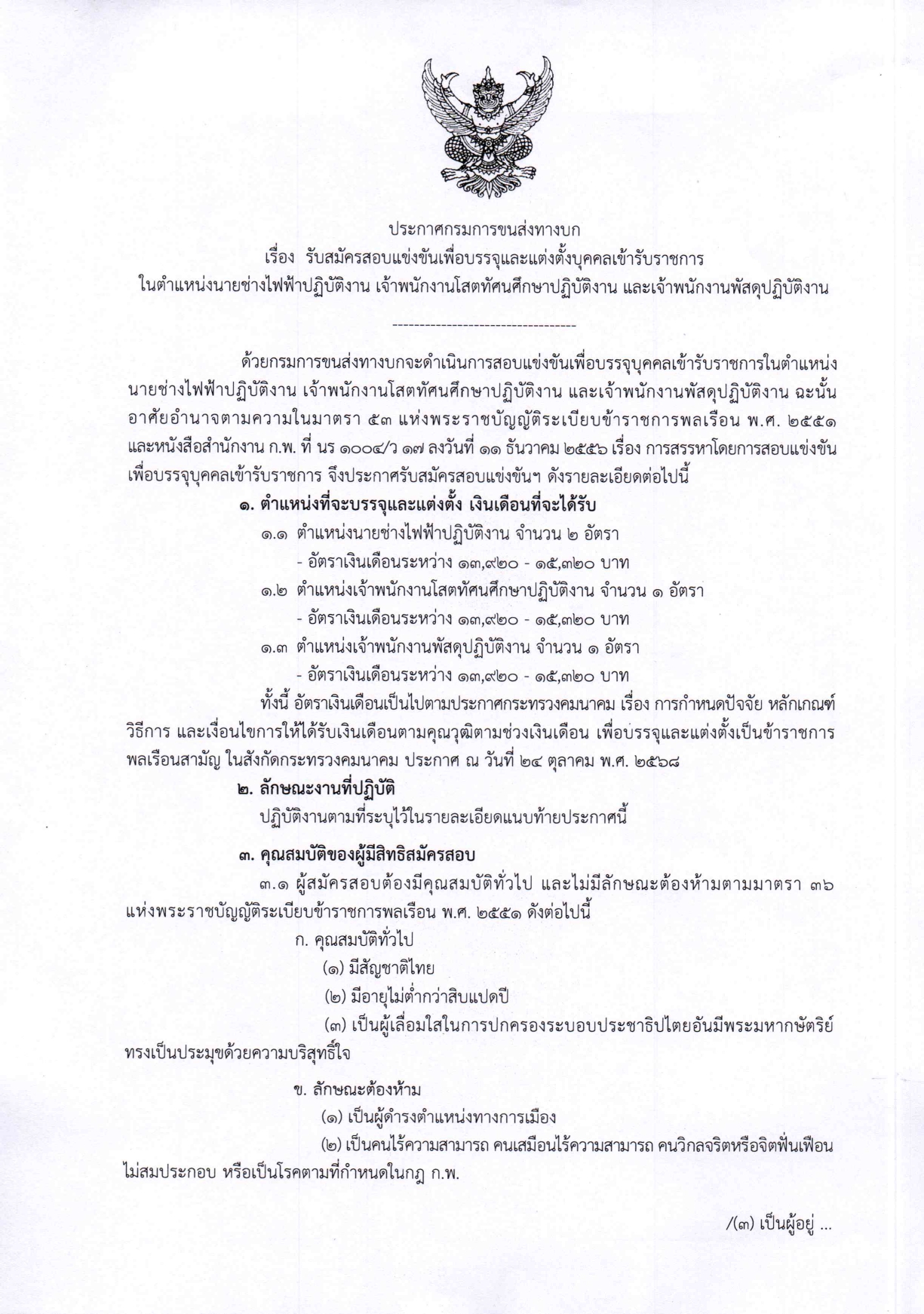 กรมการขนส่งทางบก รับสมัครสอบแข่งขันเพื่อบรรจุบุคคลเข้ารับราชการ หลายอัตรา / หลายตำแหน่ง / สมัคร online – 19 มกราคม 2569