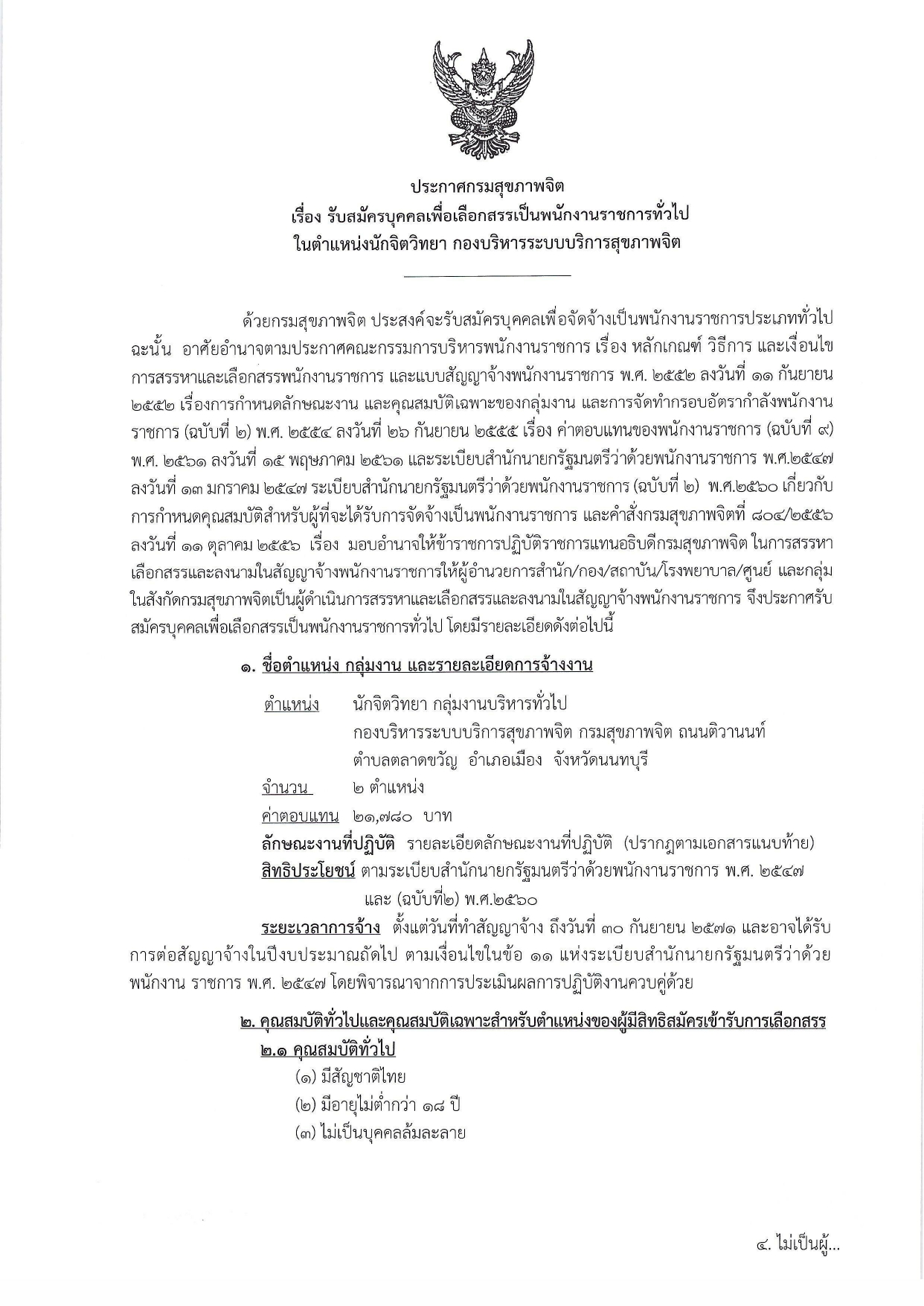 ประกาศกรมสุขภาพจิต รับสมัครพนักงานราชการ