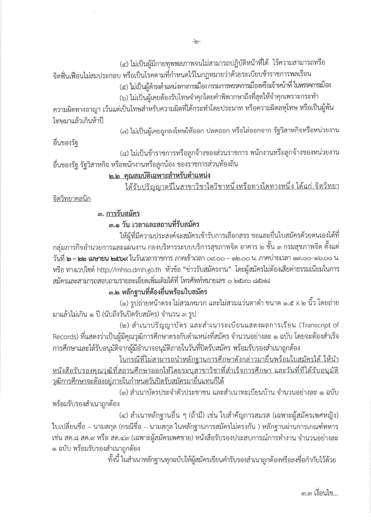 ตำแหน่งนักจิตวิทยา จำนวน 2 อัตรา โดยมีรายละเอียดและเงื่อนไขการรับสมัคร ดังต่อไปนี้