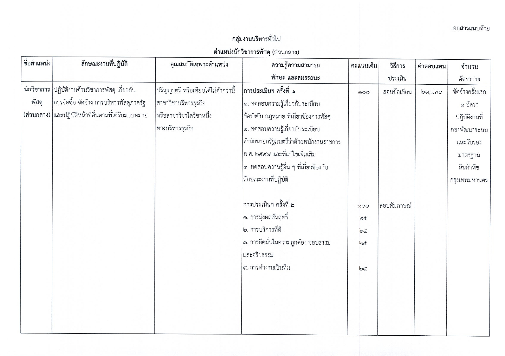ชื่อตำแหน่ง: นักวิชาการพัสดุ (ส่วนกลาง)