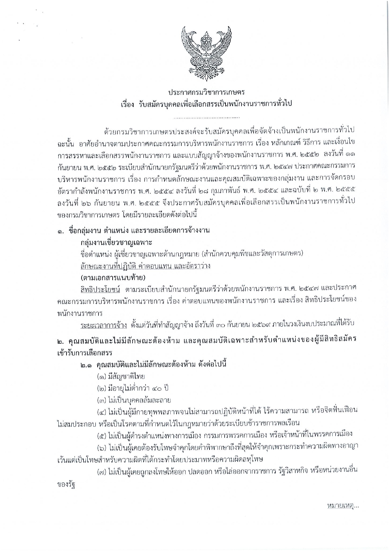 สถานที่รับสมัคร: กลุ่มสรรหาและบรรจุแต่งตั้ง กองการเจ้าหน้าที่ ชั้น 4 ตึกกสิกรรม กรมวิชาการเกษตร (บริเวณมหาวิทยาลัยเกษตรศาสตร์ เขตจตุจักร กทม.)