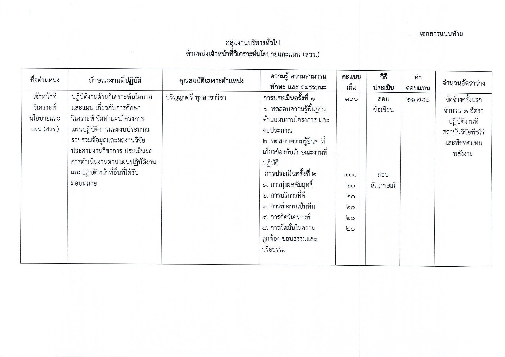 ชื่อตำแหน่ง: เจ้าหน้าที่วิเคราะห์นโยบายและแผน (สวร.)