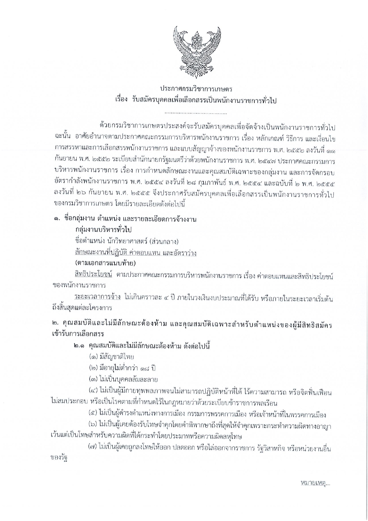 กรมวิชาการเกษตร รับสมัครพนักงานราชการทั่วไป ตำแหน่ง “นักวิทยาศาสตร์” (วุฒิ ป.ตรี)