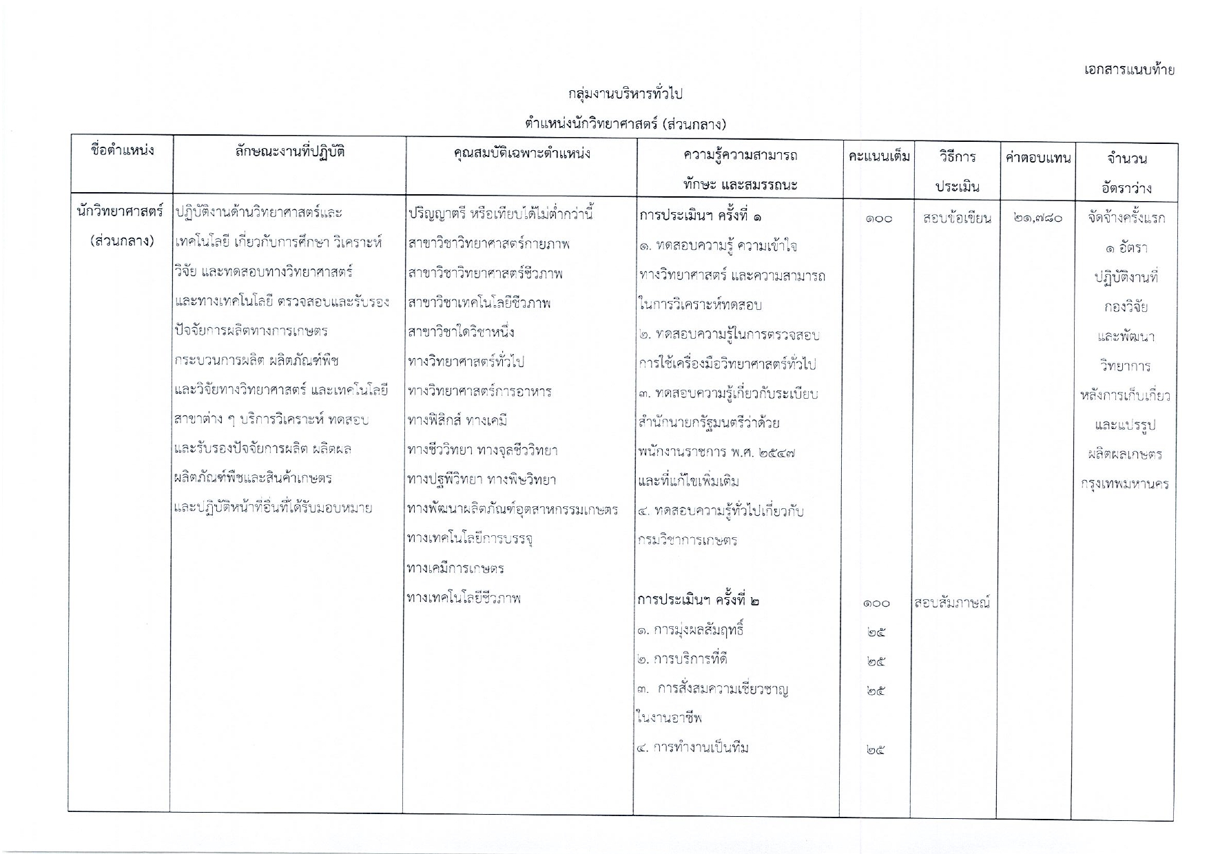 ตำแหน่ง: นักวิทยาศาสตร์ (ส่วนกลาง)